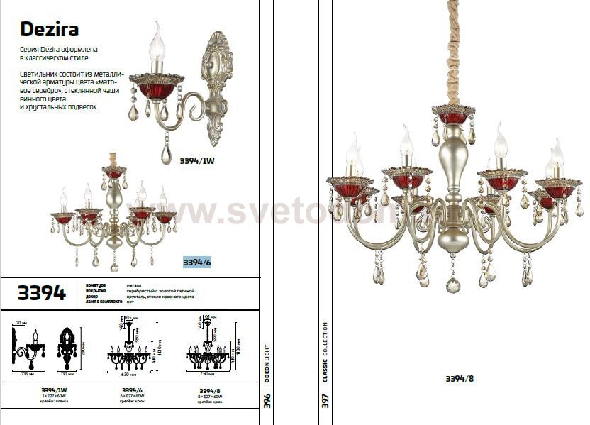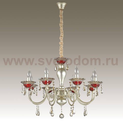 Храктерная особенность артикула 3394/8: Люстра 3394/6 серии Dezira оформлена в классическом стиле. Люстра состоит из металлической арматуры цвета "матовое серебро", стеклянной чаши винного цвета и хрустальных подвесок. Люстра выглядит очень празднично и торжественно, придаст интерьеру аристократичности и подчеркнет индивидуальность его обладателя. Цоколь E14. Мощность 8*40W. Нет ламп в комплекте.