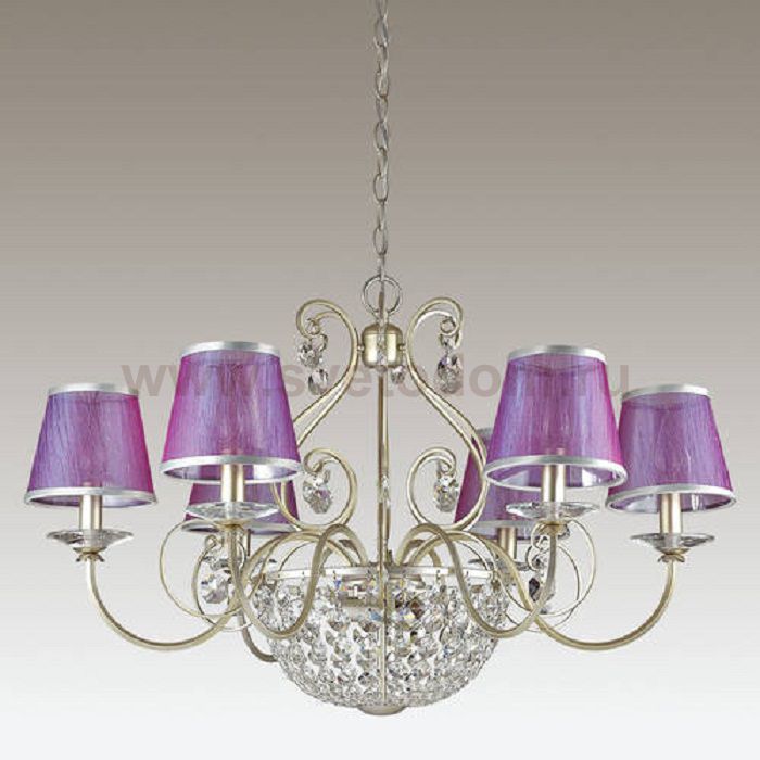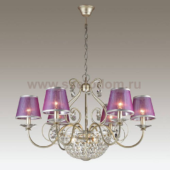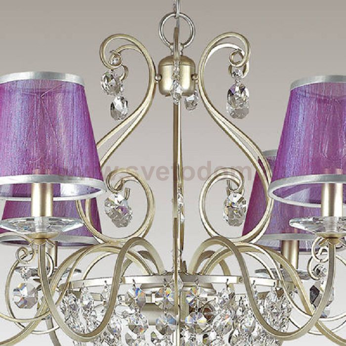 Люстра 3396 / 9 линии Zibille оформлена в классическом стиле. Светильник составляют красиво изогнутые рожки и металлические элементы. Низ люстры состоит из множества хрустальных подвесок, образующих объёмную хрустальную вазу. Полупрозрачные абажуры насыщенного сиреневого цвета, по краям украшенные каймой и так гармонично сочетающиеся с матовым золотом, подарят атмосферу изысканности, творчества и утонченности. Цоколь E14. Мощность 9*40W. Нет ламп в комплекте.