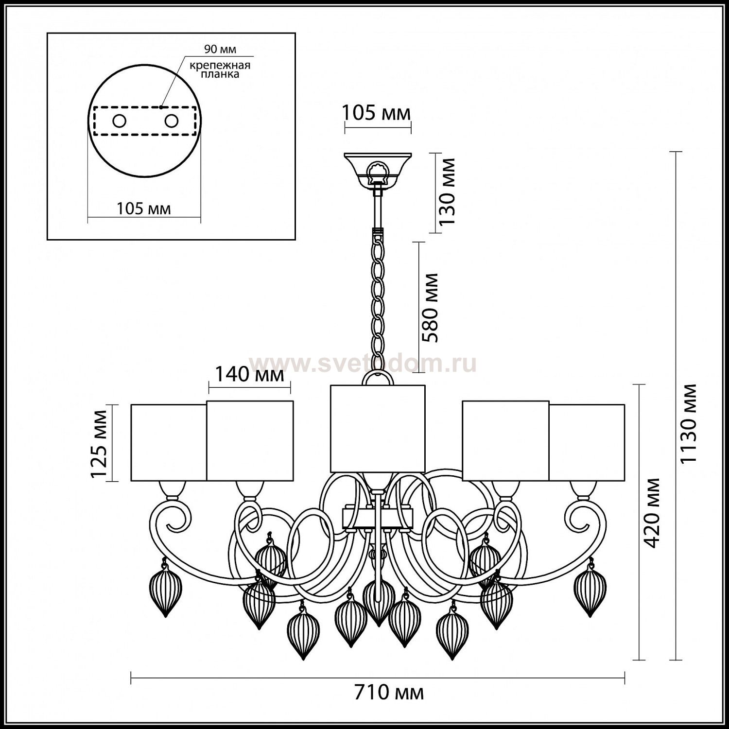 Арматура, декор: металл, стекло, плафон: ткань Материал плафона