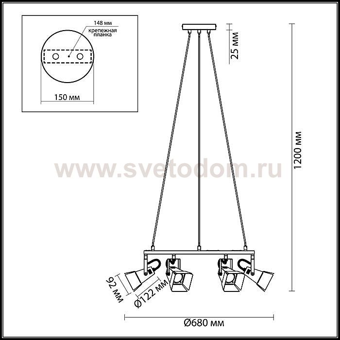 Подвесной светильник линии Techno Pro - стильное решение для интерьера в стиле лофт, Техно, Индастриал. Регулируемые створки на плафонах - прожекторах придают светильнику шарм и обаяние Техно стиля.