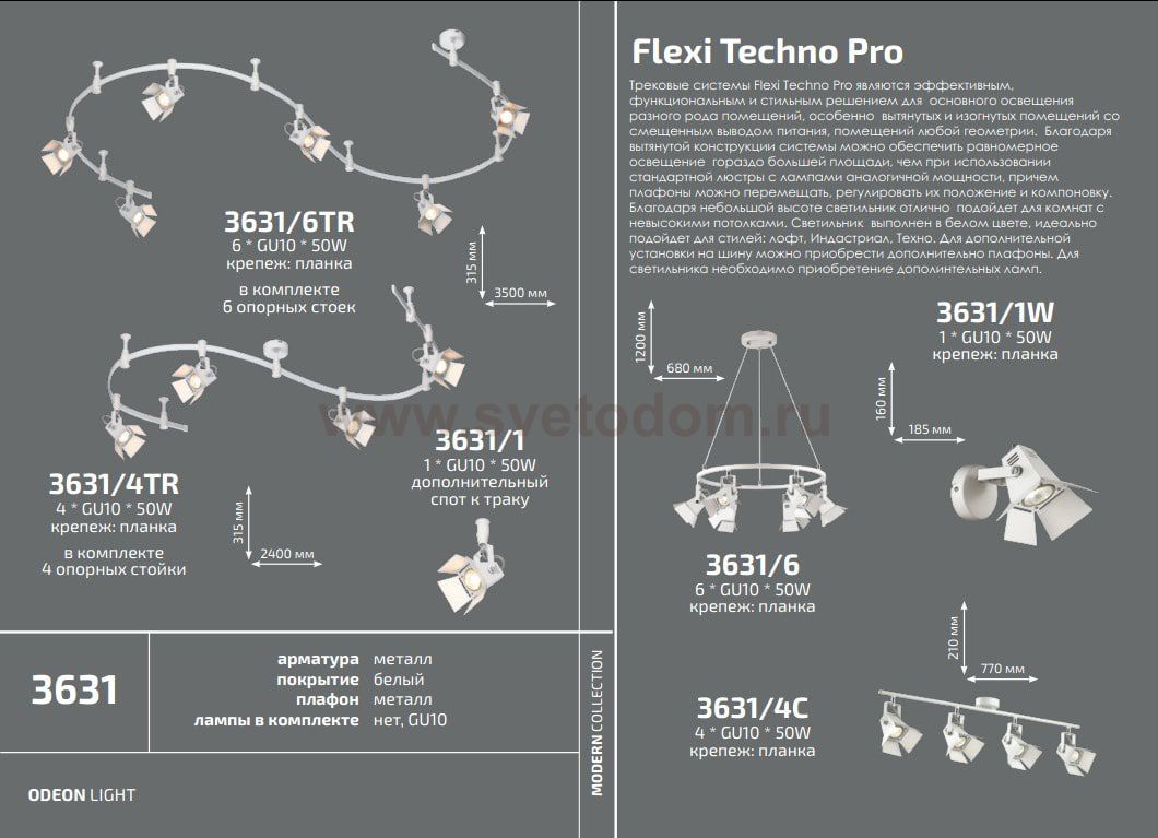 3631/6 MODERN ODL19 273 белый Подвесная люстра IP20 GU10 6*50W 220V TECHNO PRO Штрих-код