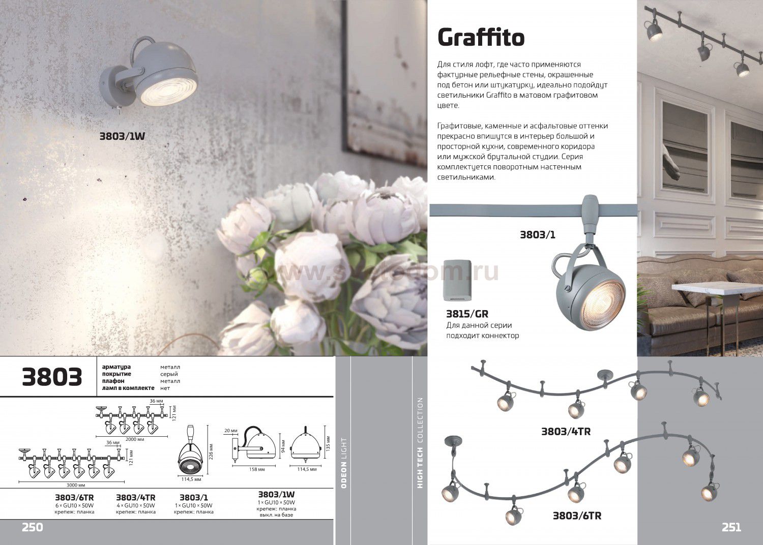 3803/6TR MODERN ODL19 251 серый/металл Гибкий трек GU10 6*50W 3000х114х294 GRAFFITO Штрих-код