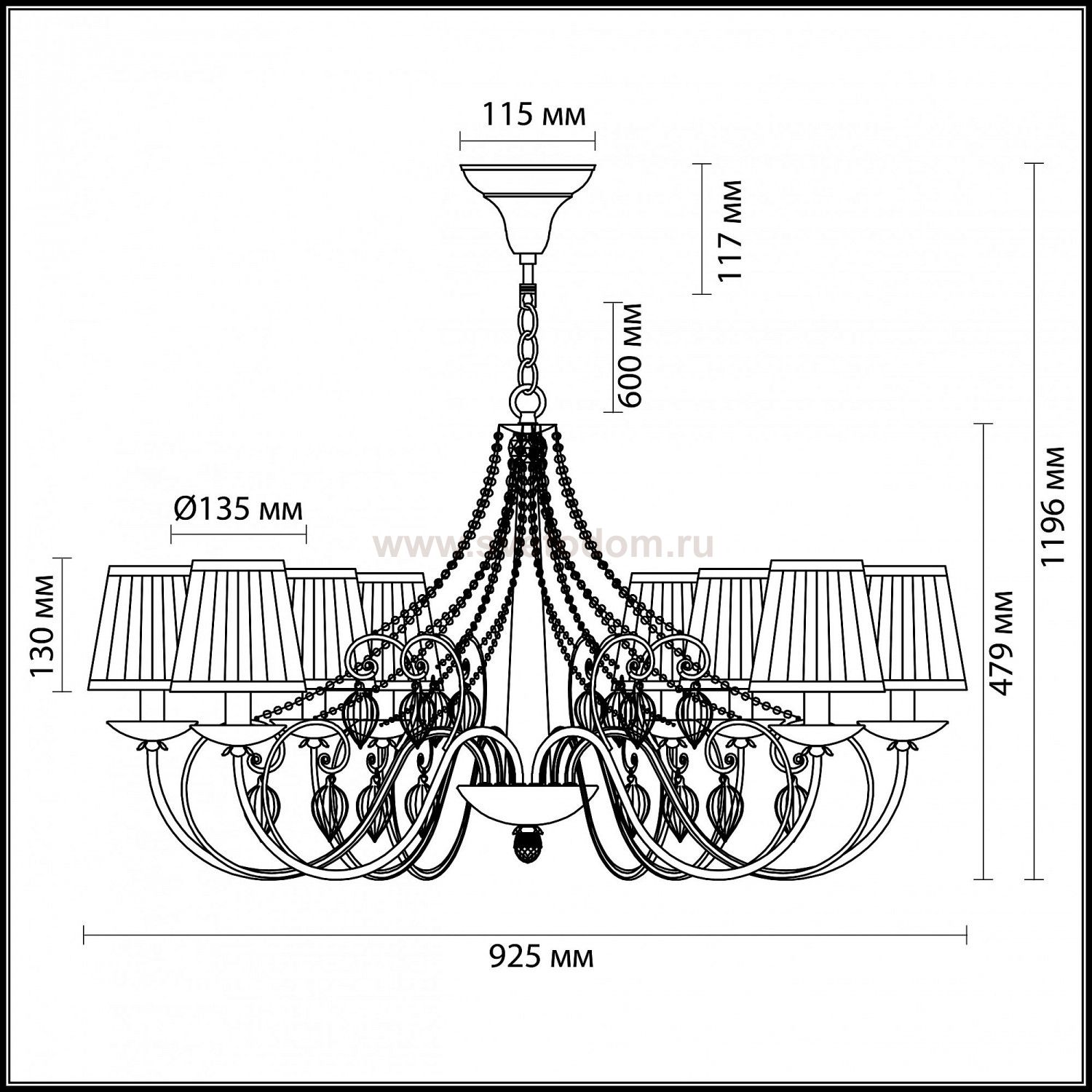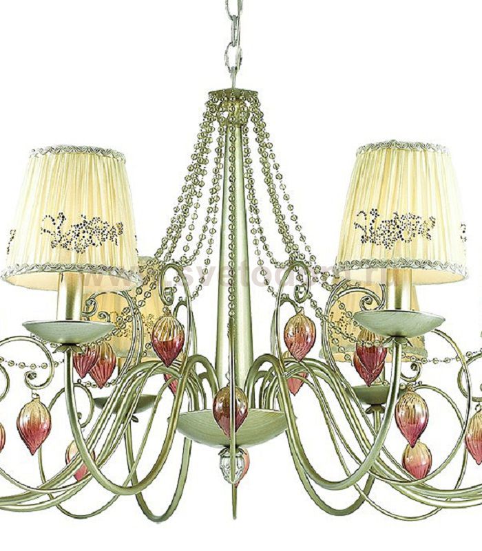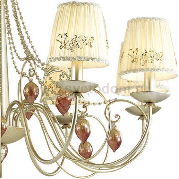арматура, декор: металл, стекло, хрустальные подвески; абажур: ткань Материал плафона