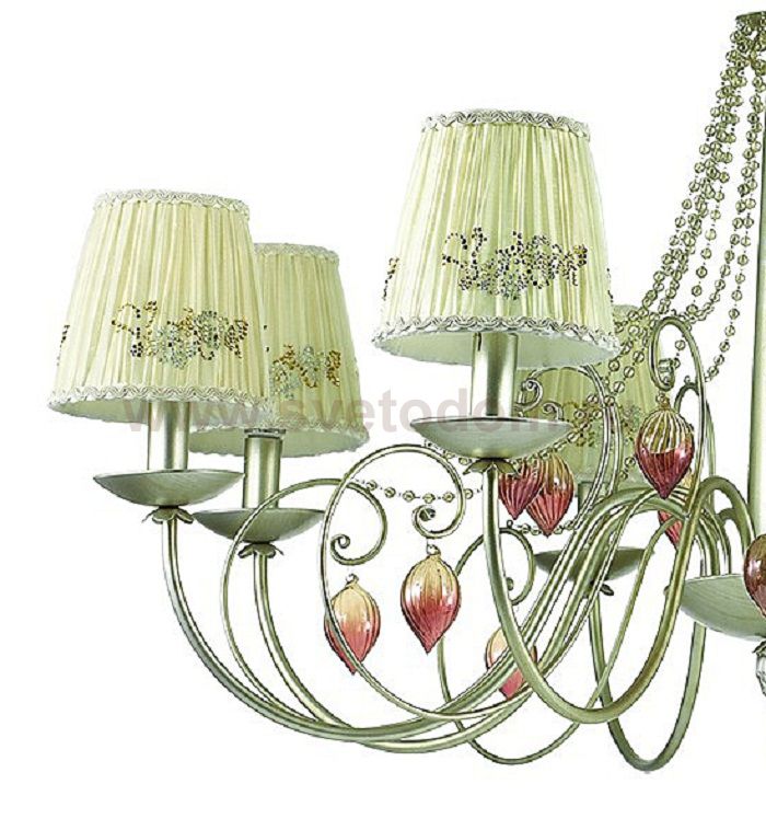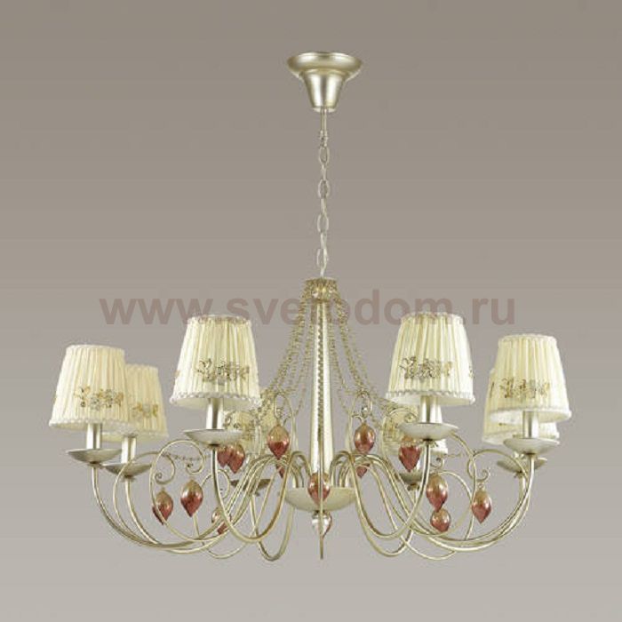 Необычайно красивая и восхитительная люстра 3922 / 8 линии Adriana в цвете матовое серебро станет ценным элементом респектабельных апартаментов или просторного загородного дома в классическом дизайне в светлых, бежевых тонах. Изюминкой данного светильника является полупрозрачные абажуры из плиссированной органзы нежнейшего теплого оттенка, тонкие хрустальные подвески в виде красиво свисающих бус, а также удивительной красоты стеклянные украшения в виде шаров темного коньячного цвета, сверкающие зеркальным глянцевым блеском. Цоколь E14. Мощность 8*40W. Нет ламп в комплекте.