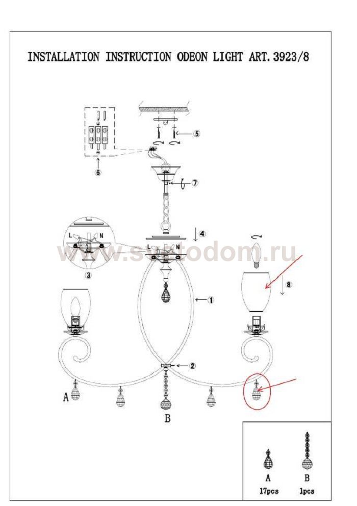 Арматура, декор: металл, стекло, хрусталь; плафон: стекло Материал плафона