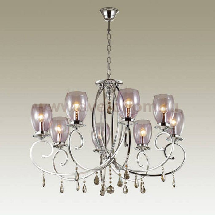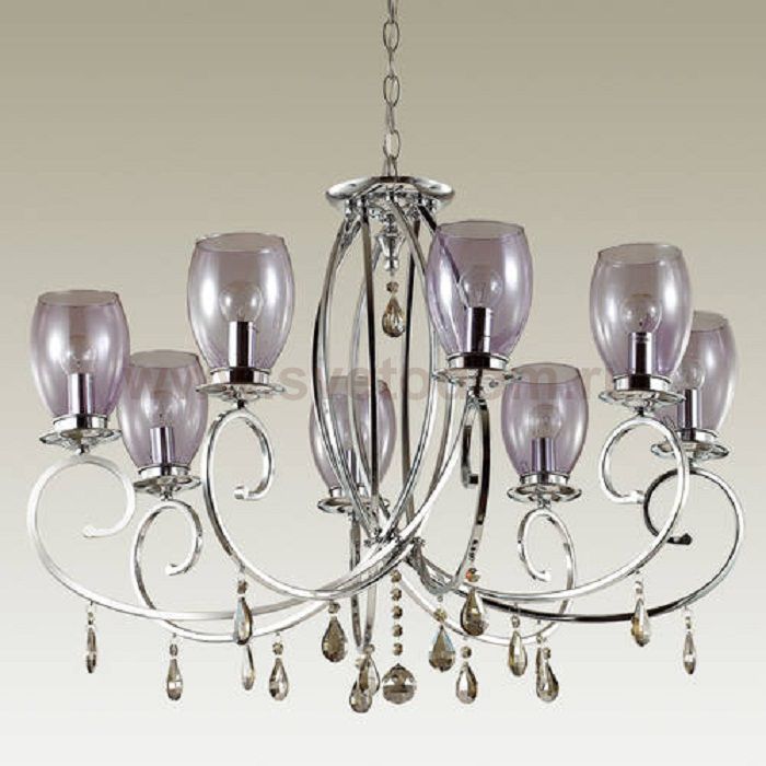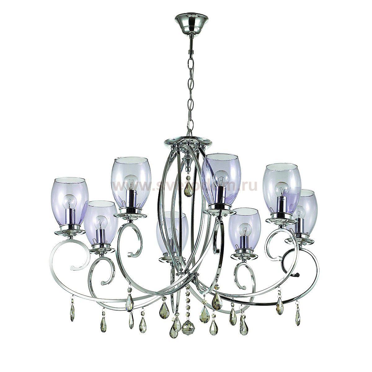Храктерная особенность артикула 3923/8: Люстра 3923/8 серии Magenta словно обладает магией света и тени. Хромовый цвет основания ярко блестит и отражается от света ламп в стеклянных плафонах волшебного сине-фиолетового цвета. Светильник украшен металлическими рожками, создающими красивую форму основания и хрустальными подвесками высшего качества, также красиво играющими в необычном и ярком свете. Цоколь E14. Мощность 8*40W. Нет ламп в комплекте.