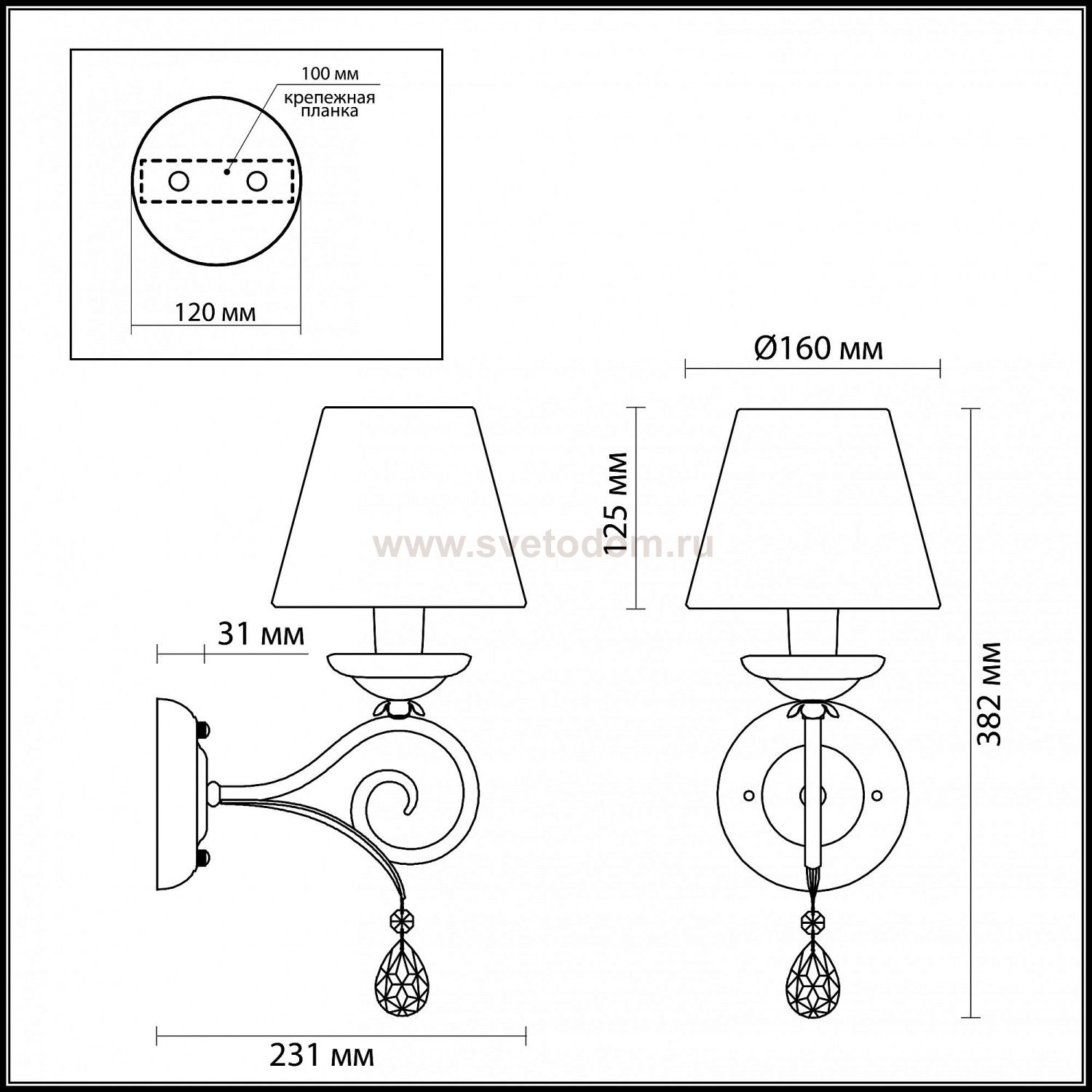 Арматура, декор: металл, стекло, хрусталь; абажур: ткань Материал плафона