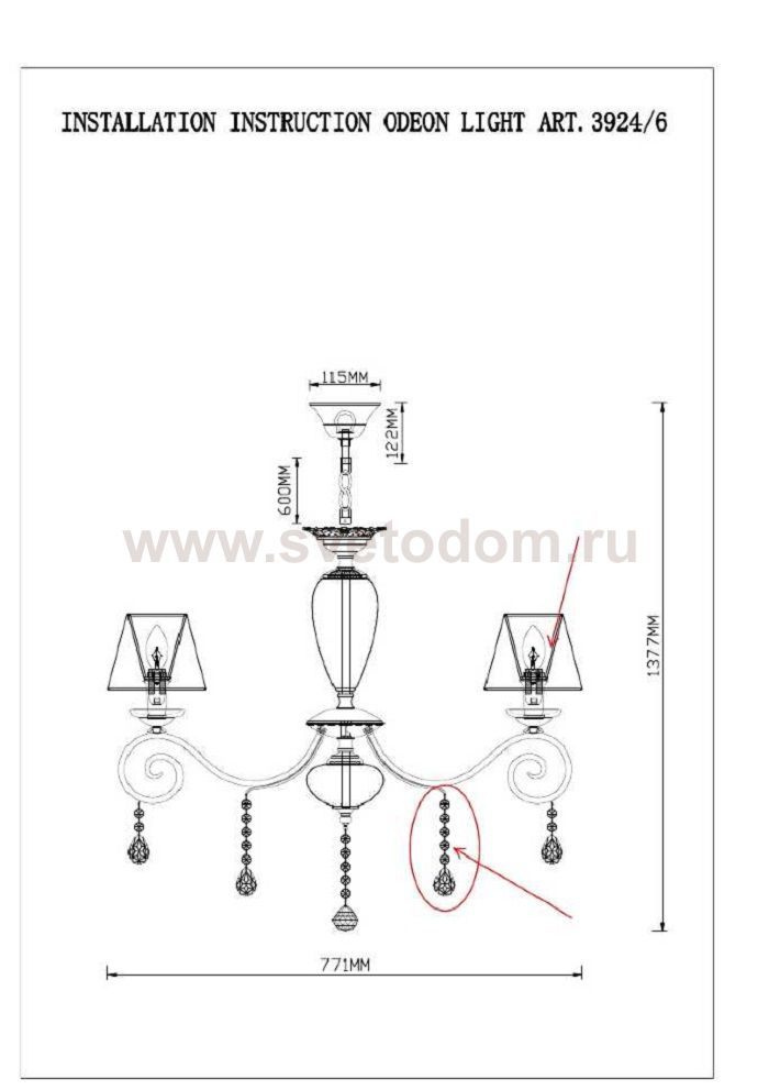3924/6 CLASSIC ODL18 426 мат.серебро/перламутр/хрусталь Люстра IP20 E14 6*40W 220V MARIONETTA Штрих-код