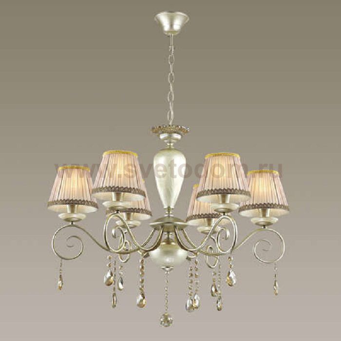 Прекрасная люстра 3924/6 линии Marionetta выглядит безупречно. Идеальное сочетание арматуры цвета "матовое серебро", нежных абажуров из тонкой плиссированной органзы с роскошным пудровым оттенком, а также шикарный хрусталь цвета "шампань", делает этот светильник совершенным, очаровательным, изысканным и очень элегантным. Такая люстра станет центром притяжения всего внимания и восхищенных взглядов. Цоколь E14. Мощность 6*40W. Нет ламп в комплекте.