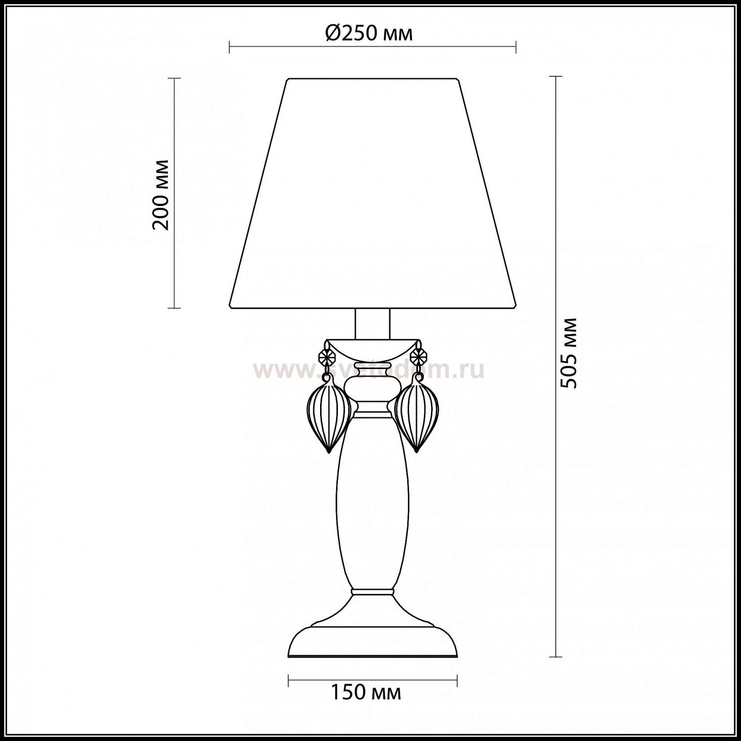 Арматура, декор: металл, стекло, хрусталь; абажур: ткань Материал плафона
