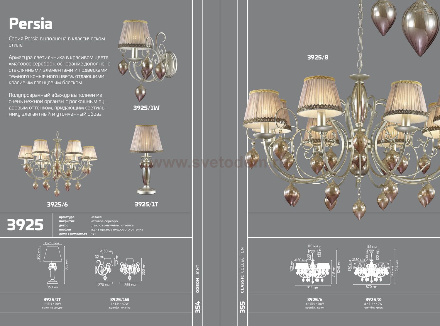 Элегантная лампа 3925/1T серии Persia выполнена в классическом стиле. Арматура светильника выполнена в красивом цвете "матовое серебро", основание дополнено стеклянными элементами и подвесками темного коньячного цвета, отдающими красивым глянцевым блеском. Полупрозрачный абажур выполнен из очень нежной органзы с роскошным пудровым оттенком, придающим светильнику столь элегантный и утонченный образ. Цоколь Е14. Мощность 1*40W. Нет ламп в комплекте.
