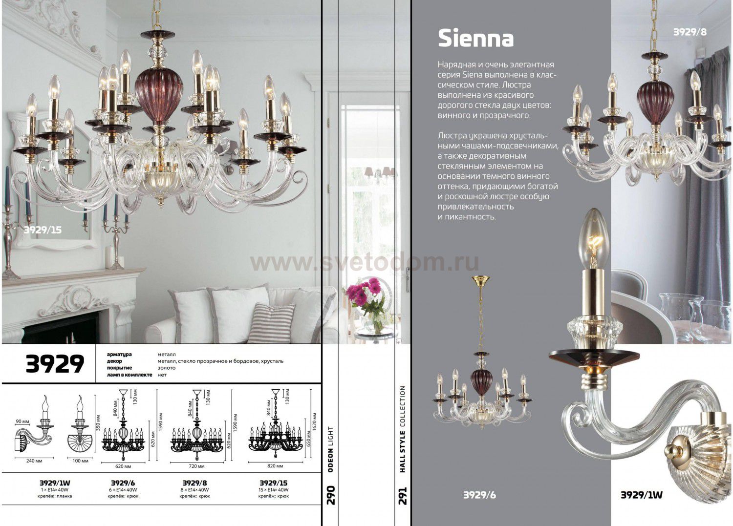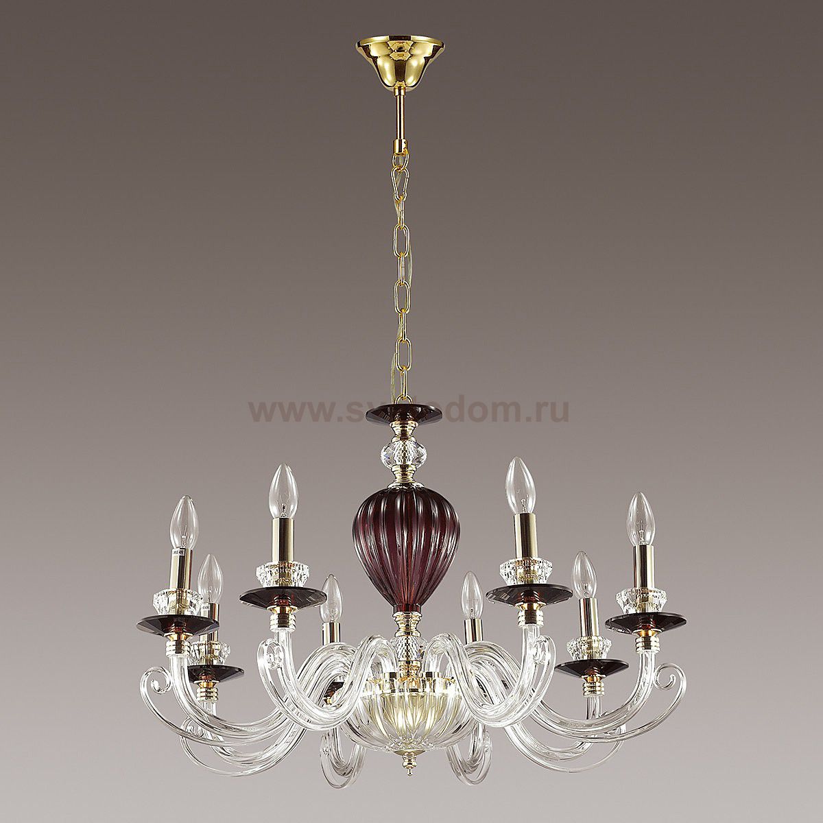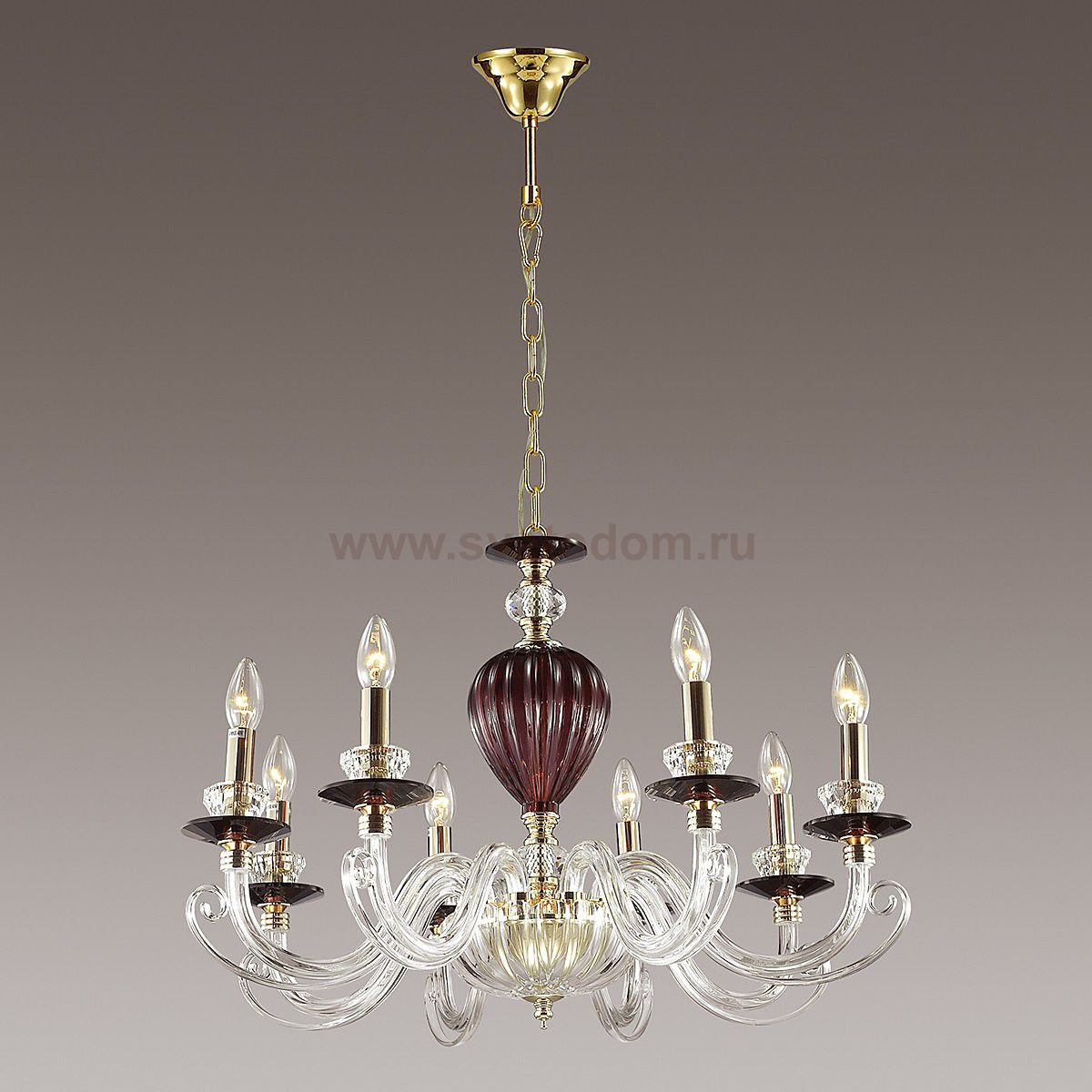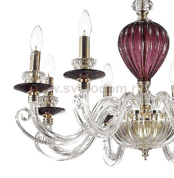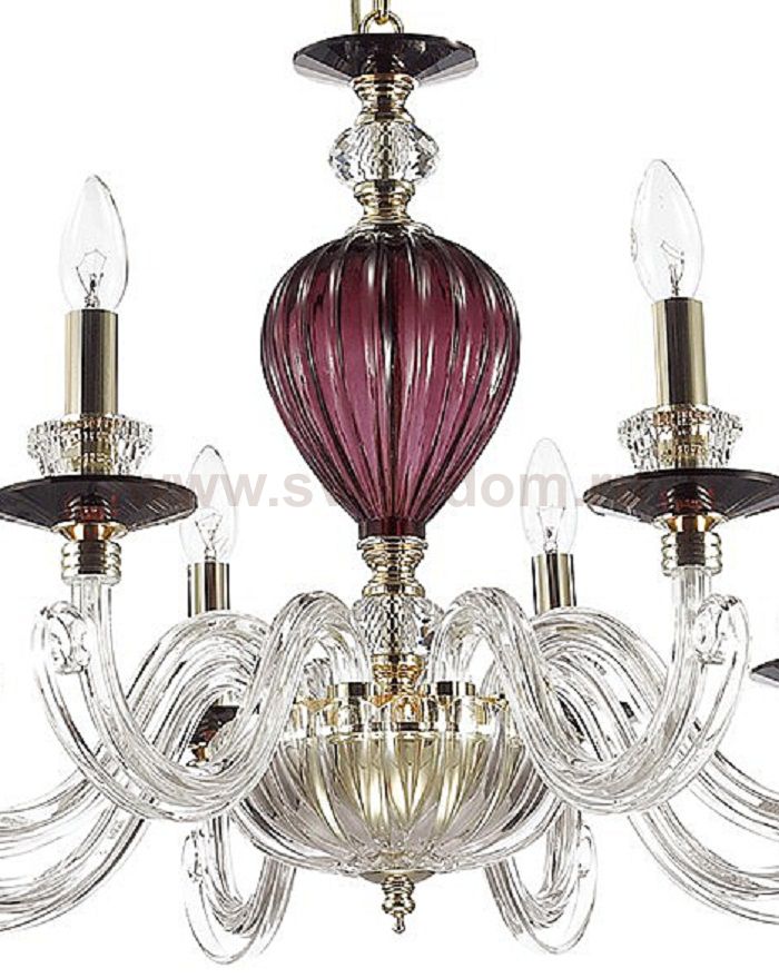 Храктерная особенность артикула 3929/8: Нарядная и очень элегантная люстра 3929/8 серии Siena выполнена в классическом стиле. Люстра выполнена из красивого дорогого стекла двух цветов: винного и прозрачного. Люстра украшена хрустальными чашами-подсвечниками, а также изящной подвеской на основании с хрусталем ярко-красного цвета, придающего богатой и роскошной люстре особую привлекательность и пикантность. Цоколь E14. Мощность 8*40W. Нет ламп в комплекте.