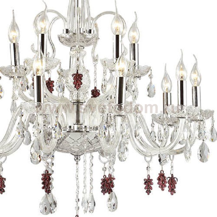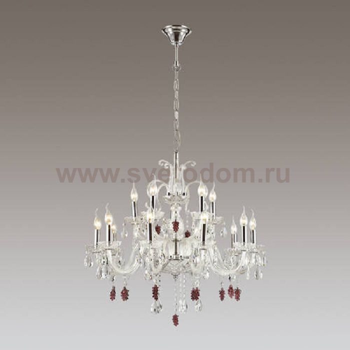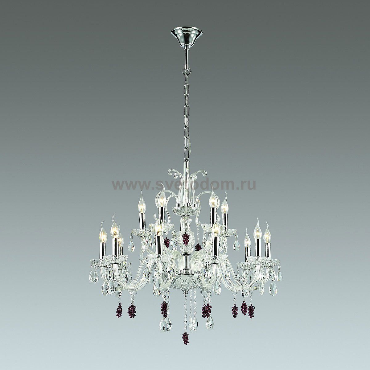 Люстра 3946/15 серии Bocciolo выполнена в классическом стиле. Богатая и пышная форма люстры создана за счет прозрачных стеклянных элементов, из которых состоит светильник. Хромовое основание и отсутствие абажуров придают ей легкость, прозрачность и воздушность. А изюминкой и главным украшением светильника является стеклянная виноградная гроздь, благодаря которой интерьер приобретет особый шарм, красоту и неповторимость. Цоколь E14. Мощность 15*40W. Нет ламп в комплекте.