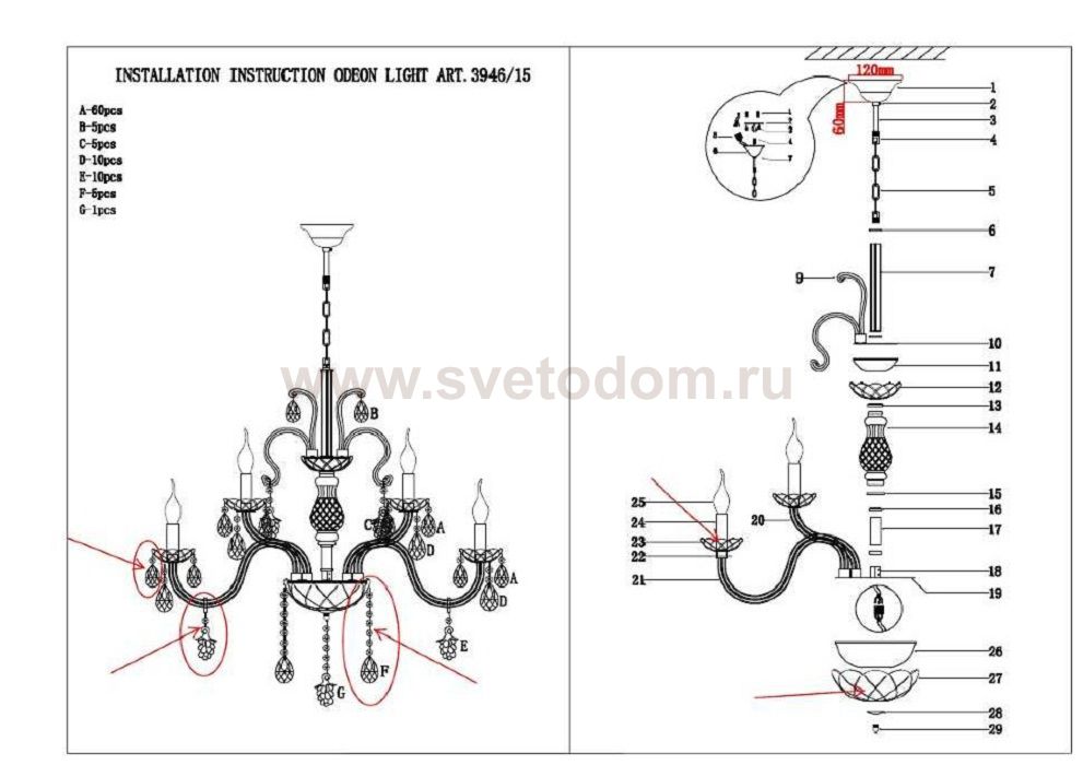 Арматура, декор: металл, стекло, хрусталь, хрустальные подвески в виде гроздьев винограда Комментарий