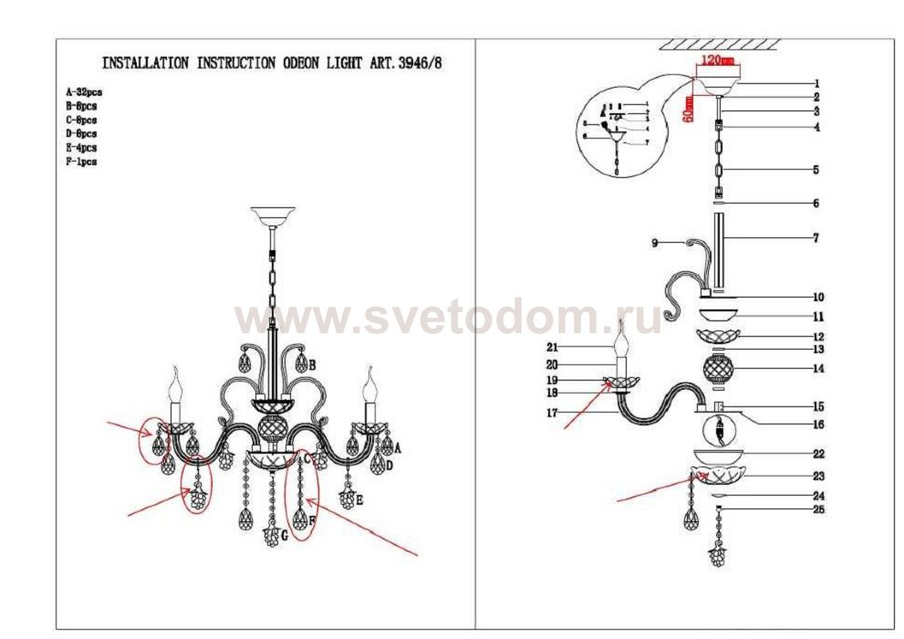 Арматура, декор: металл, стекло, хрусталь, хрустальные подвески в виде гроздьев винограда Материал декора