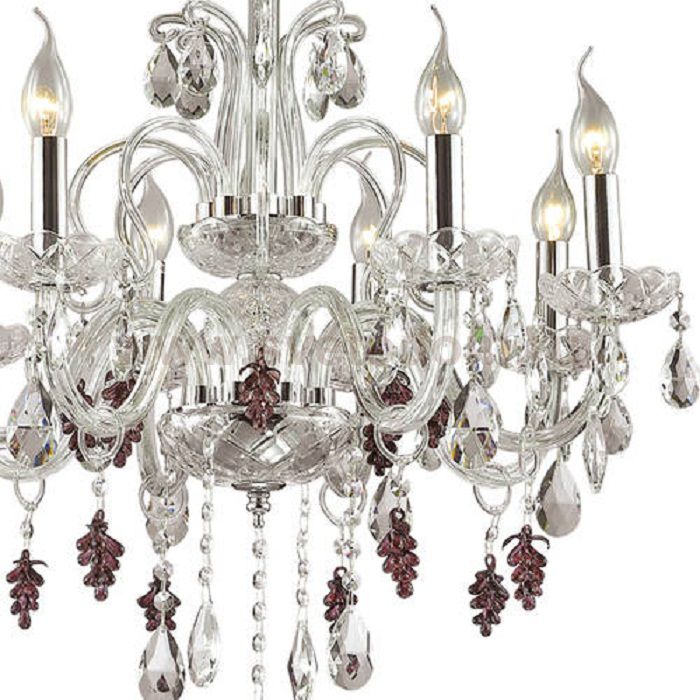 Люстра 3946/8 серии Bocciolo выполнена в классическом стиле. Богатая и пышная форма люстры создана за счет прозрачных стеклянных элементов, из которых состоит светильник. Хромовое основание и отсутствие абажуров придают ей легкость, прозрачность и воздушность. А изюминкой и главным украшением светильника является стеклянная виноградная гроздь, благодаря которой интерьер приобретет особый шарм, красоту и неповторимость. Цоколь E14. Мощность 8*40W. Нет ламп в комплекте.