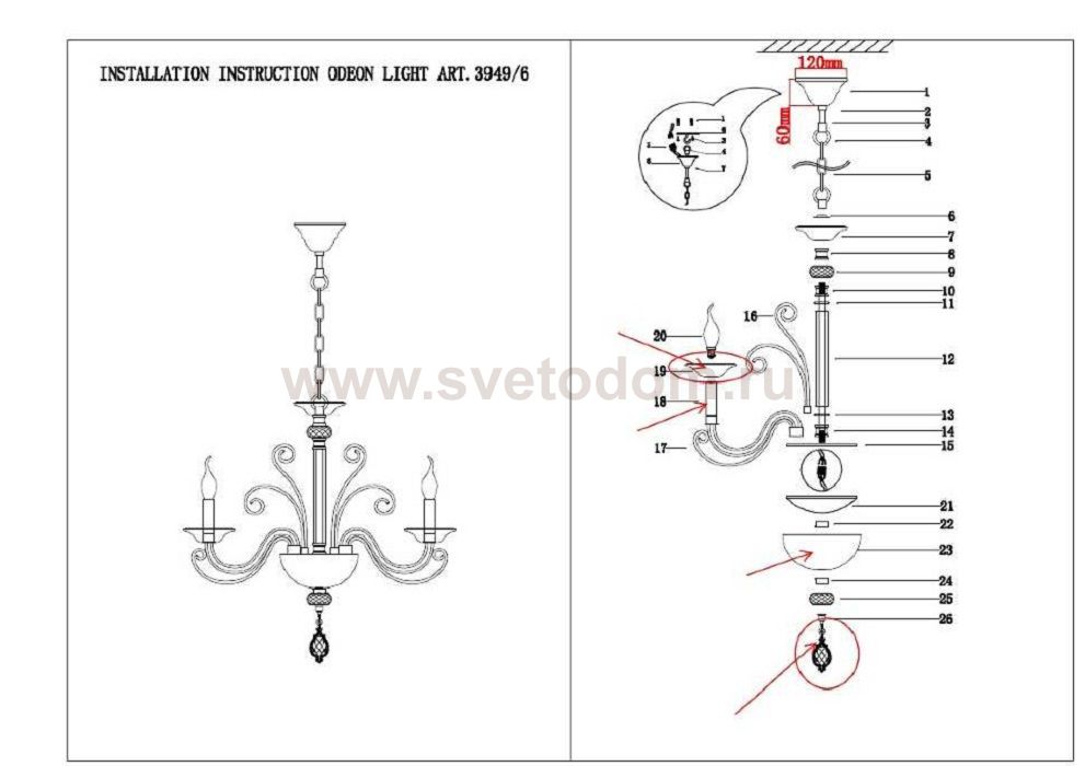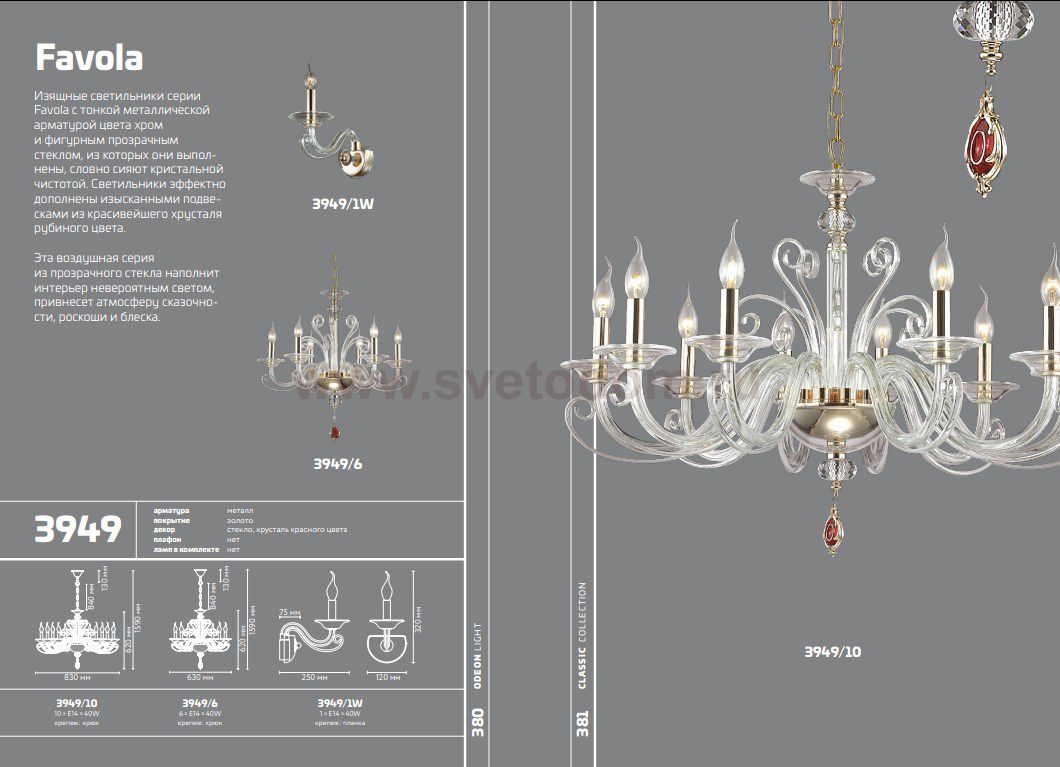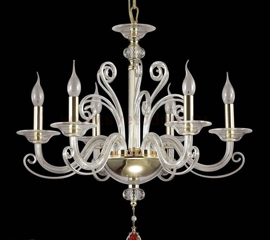 Храктерная особенность артикула 3949/6: Изящная люстра 3949/6 серии Favola с тонкой металлической арматурой цвета хром и фигурным прозрачным стеклом, из которого выполнен светильник, словно сияет кристальной чистотой. Светильник эффектно дополняет изысканная подвеска из красивейшего хрусталя рубиного цвета. Эта воздушная люстра из прозрачного стекла наполнит интерьер невероятным светом, привнесет атмосферу сказочности, роскоши и блеска. Цоколь E14. Мощность 6*40W. Нет ламп в комплекте.