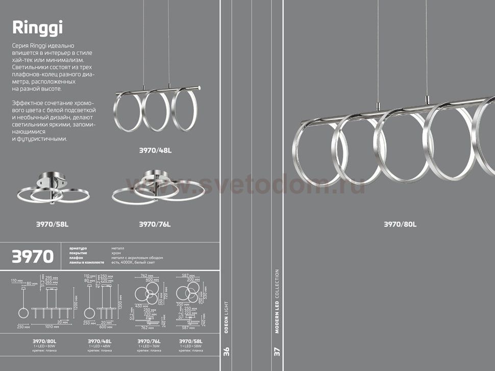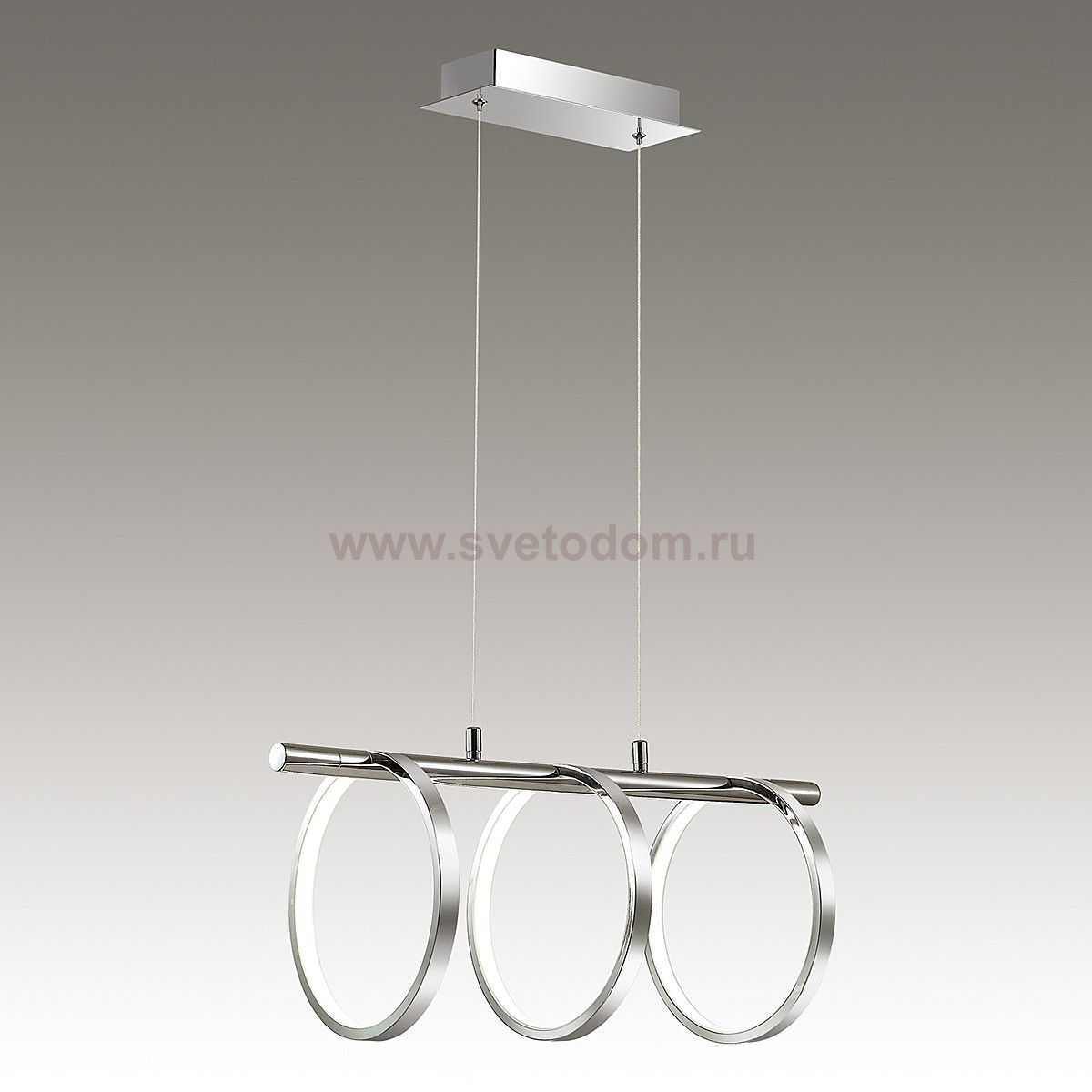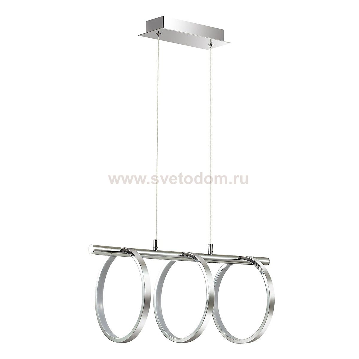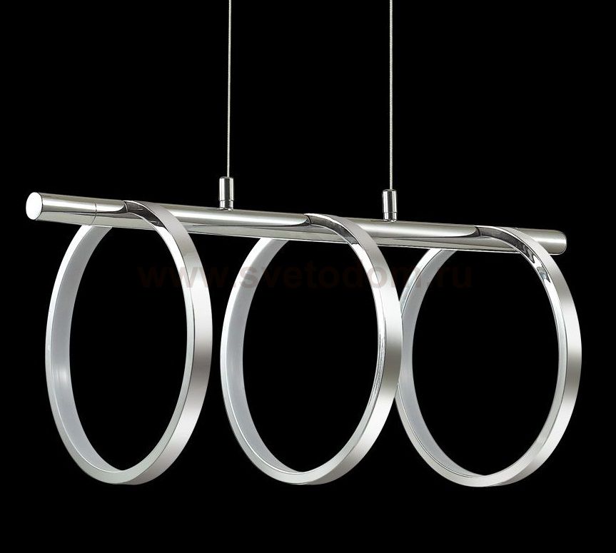 Люстра 3970 / 48L линии Ringgi идеально впишется в интерьер в стиле хай - тек или минимализм. Люстра состоит из трех плафонов - колец разного диаметра, висящих на длинном горизонтальном основании. Эффектное сочетание хромового цвета с белой подсветкой и необычный дизайн, делает светильник ярким, запоминающимся и футуристичным. Цоколь LED. Мощность 48W.