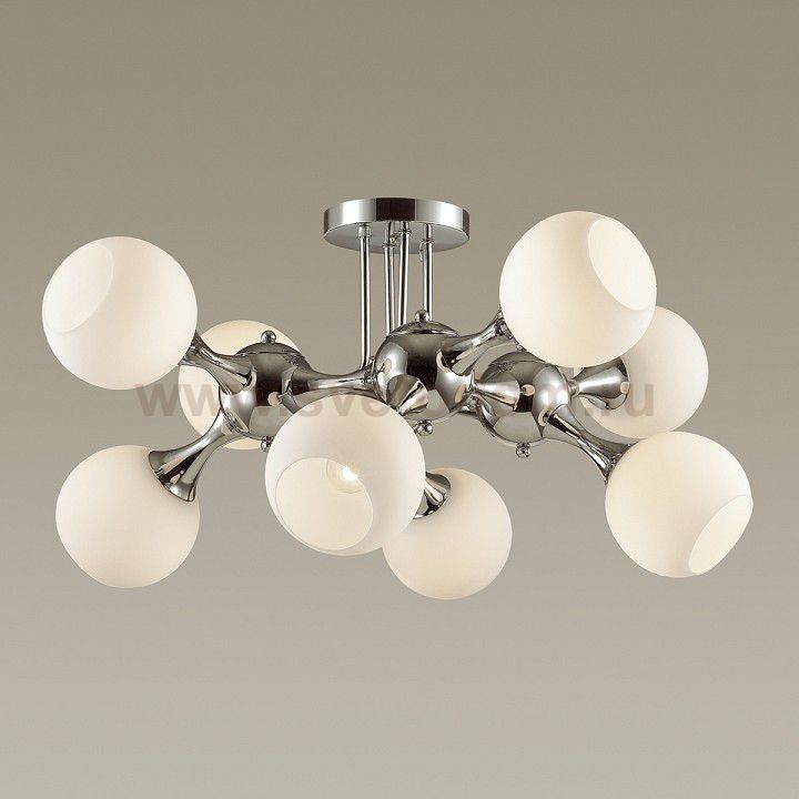 Храктерная особенность артикула 3972/8C: Люстра 3972/8C серии Molla состоит из хромированной металлической арматуры и белыми плафонами из стекла с матовым напылением. Люстра обладает эффектным цветовым сочетанием и ярким, запоминающимся дизайном. Элементы в виде сфер на основании с глянцевым хромовым блеском дополнены круглыми плафонами, что делает светильник интересным, модным и актуальным. Цоколь E27. Мощность 8*60W. Нет ламп в комплекте.