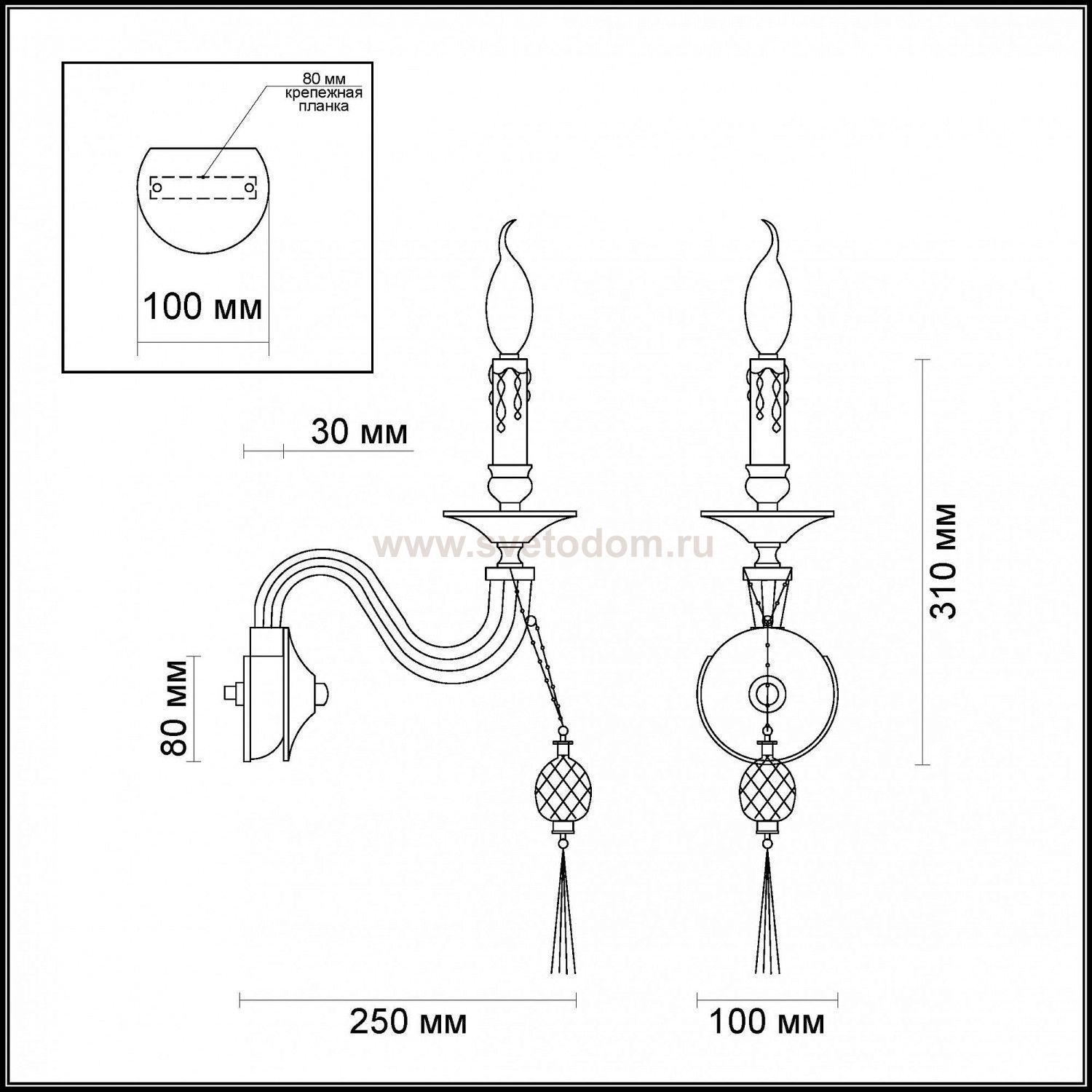 арматура, декор: металл, стекло, хрусталь, металлические подвески Комментарий