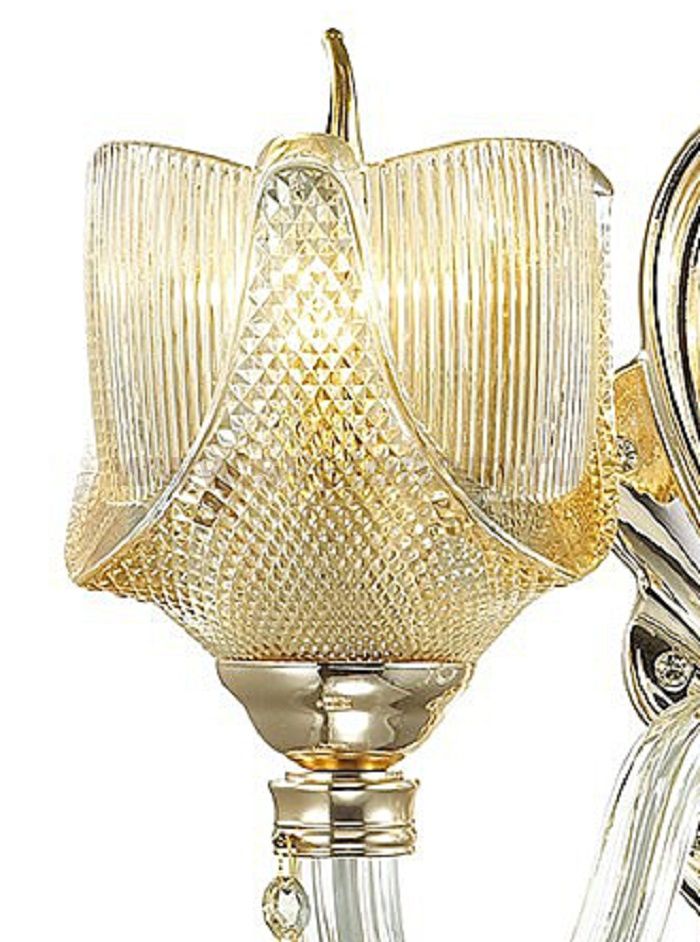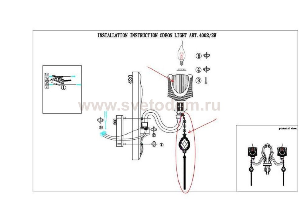 арматура, декор: металл, стекло, хрусталь, декоративные цепочки с хрусталем; плафон: стекло Материал плафона
