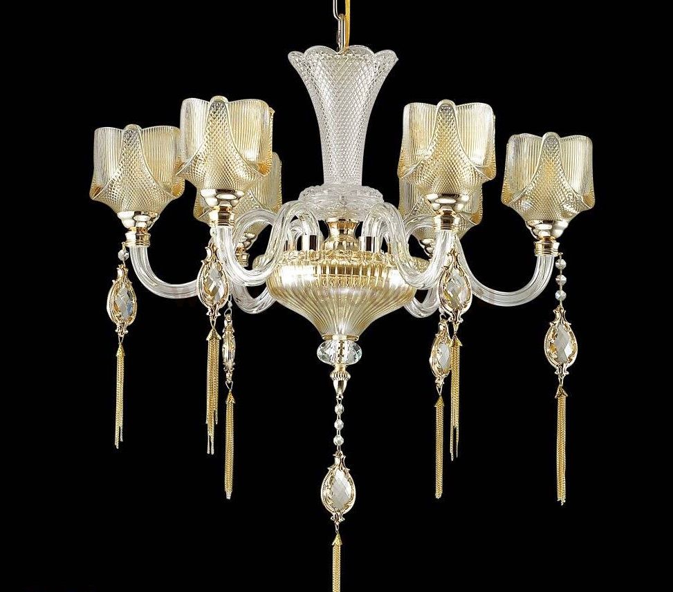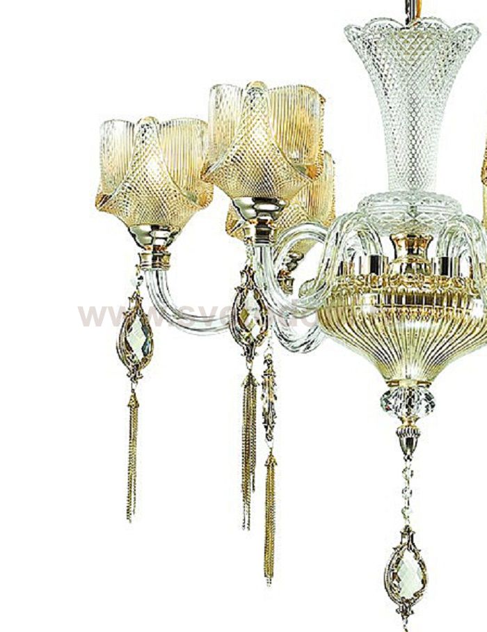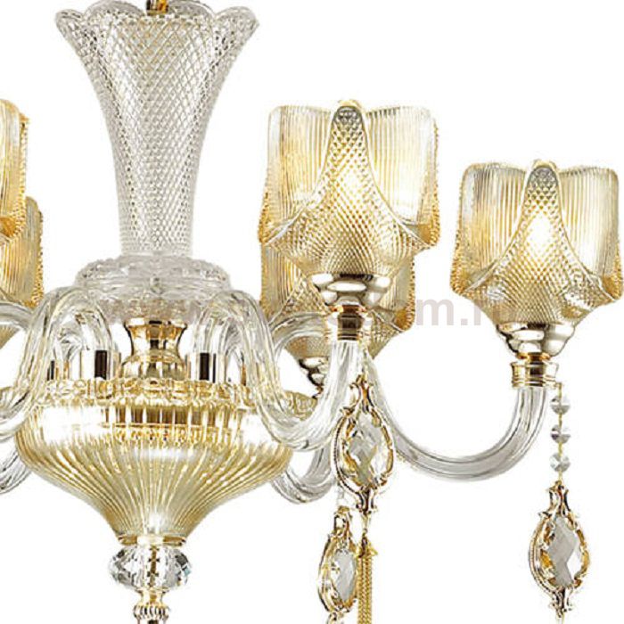 Храктерная особенность артикула 4002/6: Люстра 4002/6 серии Corsa выполнена из металлической арматуры золотого цвета, а также из красивейшего рельефного стекла, из которого состоит весь светильник. Рожки украшены изысканными тонкими подвесками из металлической цепочки и прозрачного хрусталя. Изящные, великолепные формы стеклянного основания и массивных подсвечников делают люстру настоящим современным шедевром, а благородное сочетание прозрачного стекла с цветом "шампань", способно преображать все окружащее пространство. Цоколь E14. Мощность 6*40W. Нет ламп в комплекте.