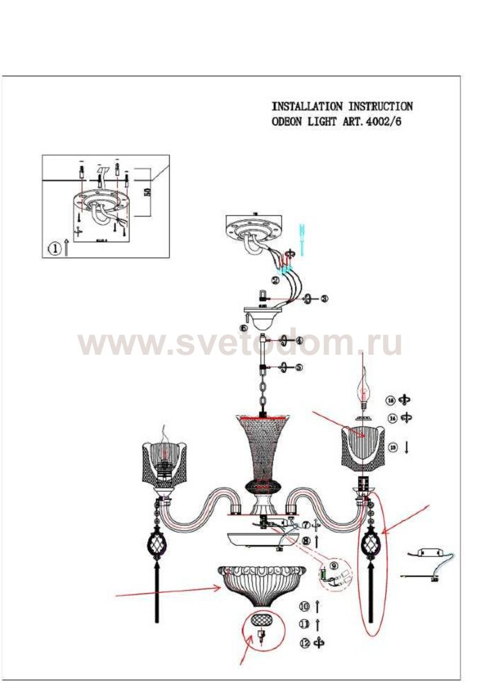 арматура, декор: металл, стекло, хрусталь, декоративные цепочки с хрусталем; плафон: стекло Материал плафона