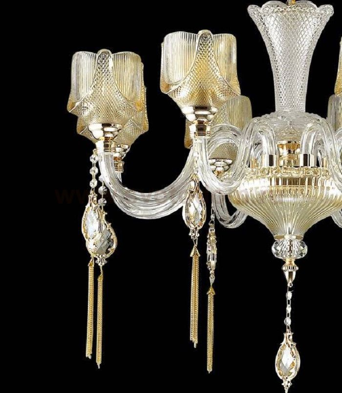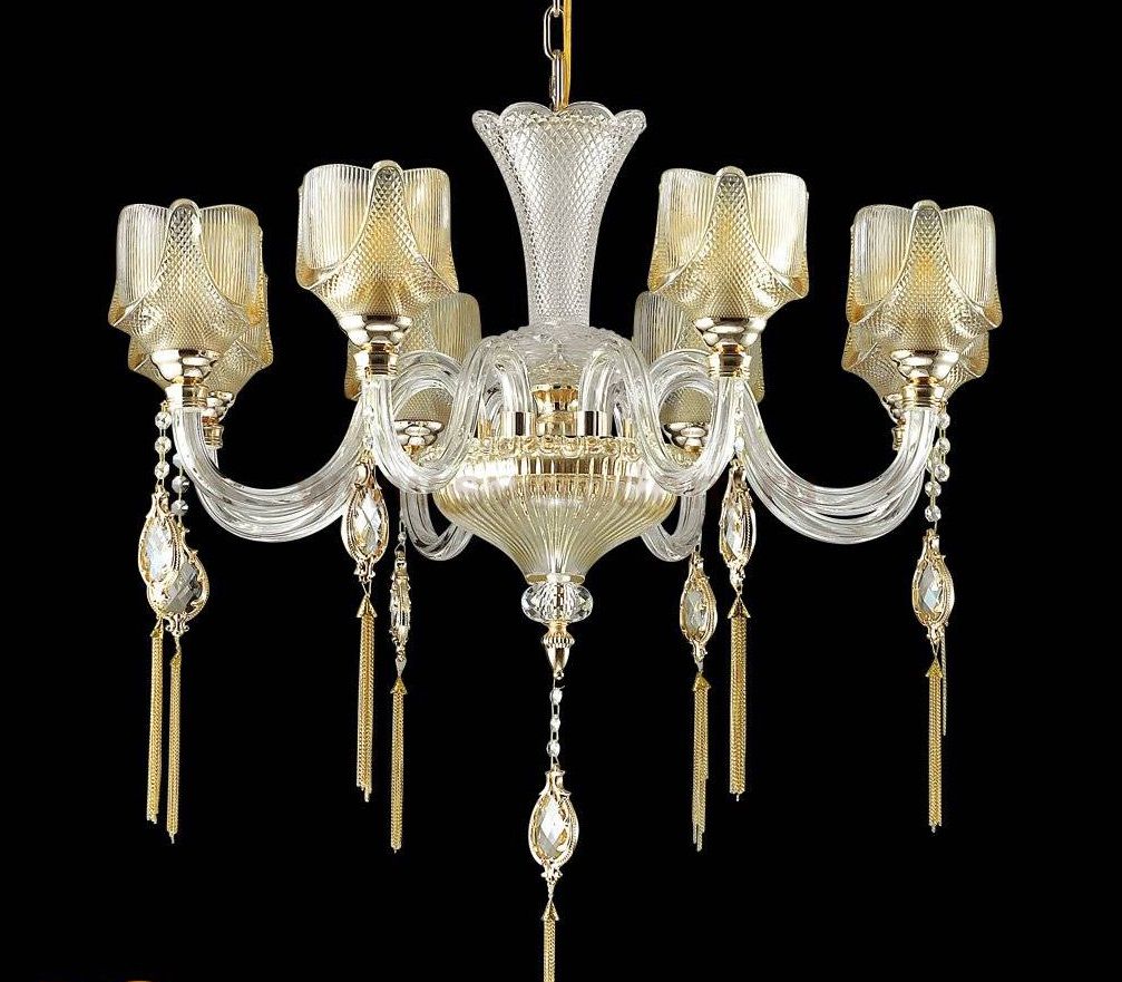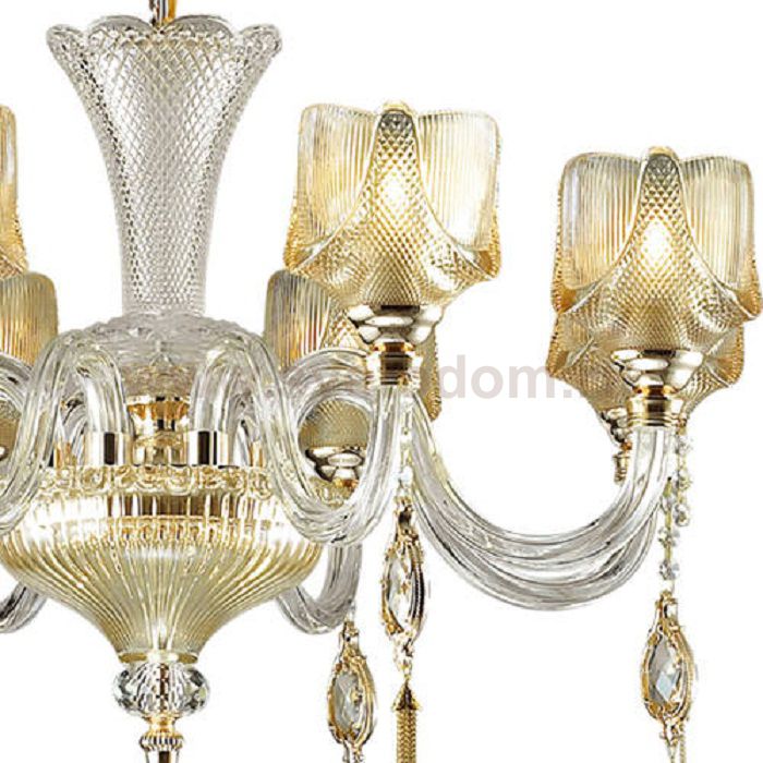 Храктерная особенность артикула 4002/8: Люстра 4002/8 серии Corsa выполнена из металлической арматуры золотого цвета, а также из красивейшего рельефного стекла, из которого состоит весь светильник. Рожки украшены изысканными тонкими подвесками из металлической цепочки и прозрачного хрусталя. Изящные, великолепные формы стеклянного основания и массивных подсвечников делают люстру настоящим современным шедевром, а благородное сочетание прозрачного стекла с цветом "шампань", способно преображать все окружащее пространство. Цоколь E14. Мощность 8*40W. Нет ламп в комплекте.
