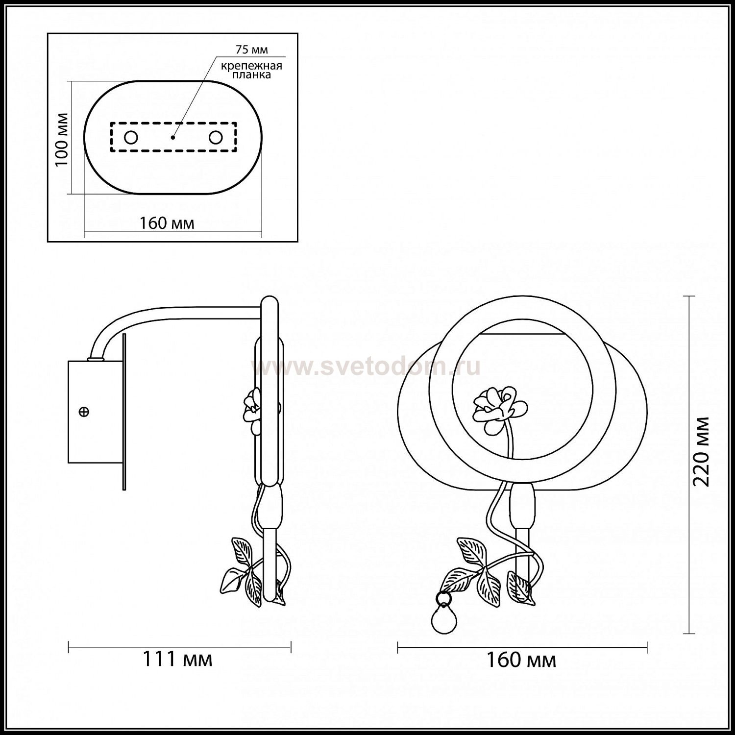 Храктерная особенность артикула 4036/6WL: Яркое и эффектное бра 4036/6WL серии Fiuggi выполнено в стиле модерн. Бра состоит из небольшого кольца, расположенного на металлическом основании. С внешней стороны плафон обрамлен широким кольцом золотого цвета, внутри яркая светодиодная подсветка. Основание плафона обвито тонкой изящной веткой, украшенной изысканным хрусталем и золотистым цветком. Эти элементы придают строгому и современному дизайну нотку нежности, свежести и очарования. Цоколь LED. Мощность 6W.