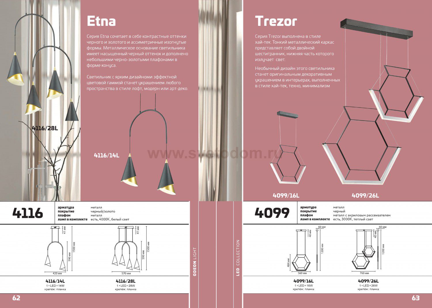 Линия Trezor выполнена в стиле хай - тек и разительно отличается от светильников данного стиля. Тонкий металлический каркас представляет собой двойной шестигранник, нижняя часть которого излучает яркий, но яркий свет. Металлическая поверхность в двух цветах: черный и хром. Необычный дизайн этого светильника станет оригинальным декоративным украшением в интерьерах, выполненных в стиле хай - тек, техно, минимализм.