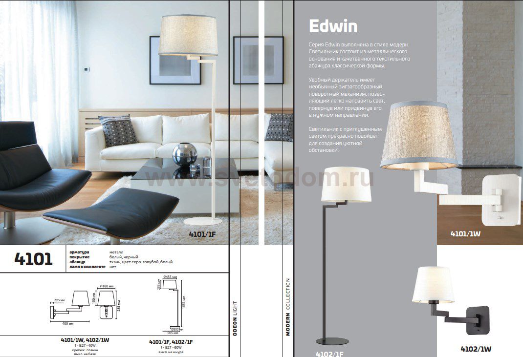 Линия Edwin выполнена в стиле модерн. Светильник состоит из металлического основания и качественного текстильного абажура классической формы. Удобный держатель имеет необычный зигзагообразный поворотный механизм, позволяющий легко направить свет, повернув или придвинув его в нужном направлении. Светильник с приглушенным светом прекрасно подойдет для создания уютной обстановки.