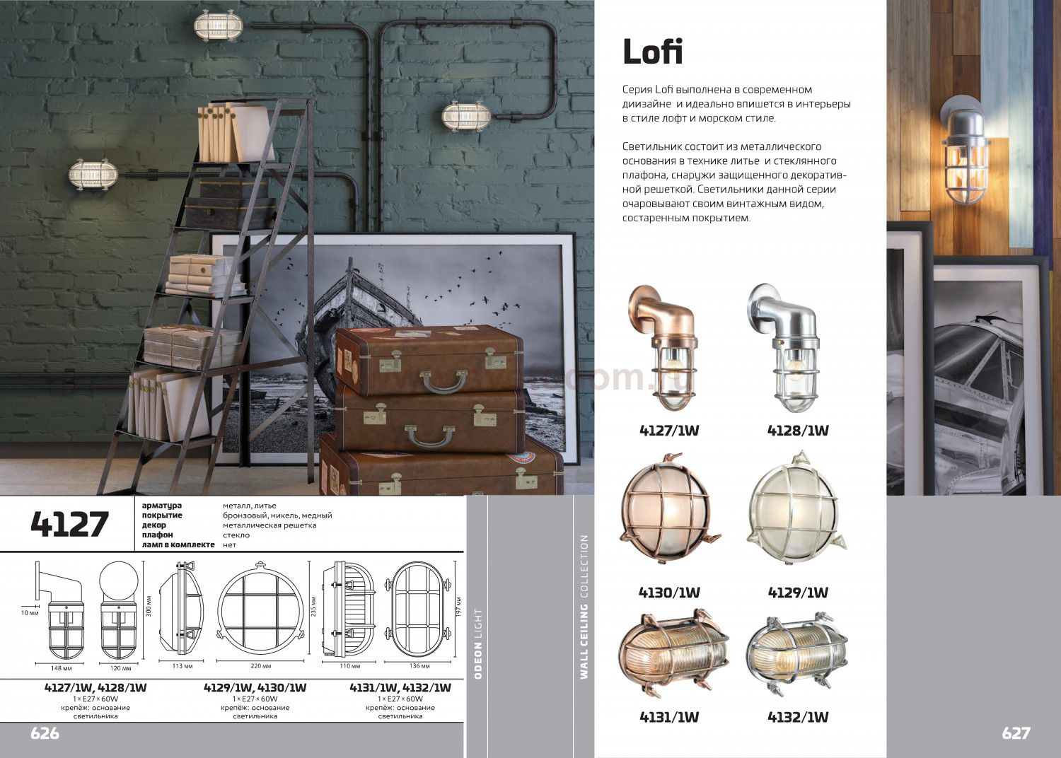 Линия Lofi выполнена в популярном на сегодняшний день дизайне и идеально впишется в интерьеры в стиле лофт и морском стиле. Светильник состоит из металлического основания и стеклянного плафона, снаружи защищенного декоративной решеткой. Светильники данной линии очаровывают своим винтажным видом, состаренным металлом и эффектом ковки.