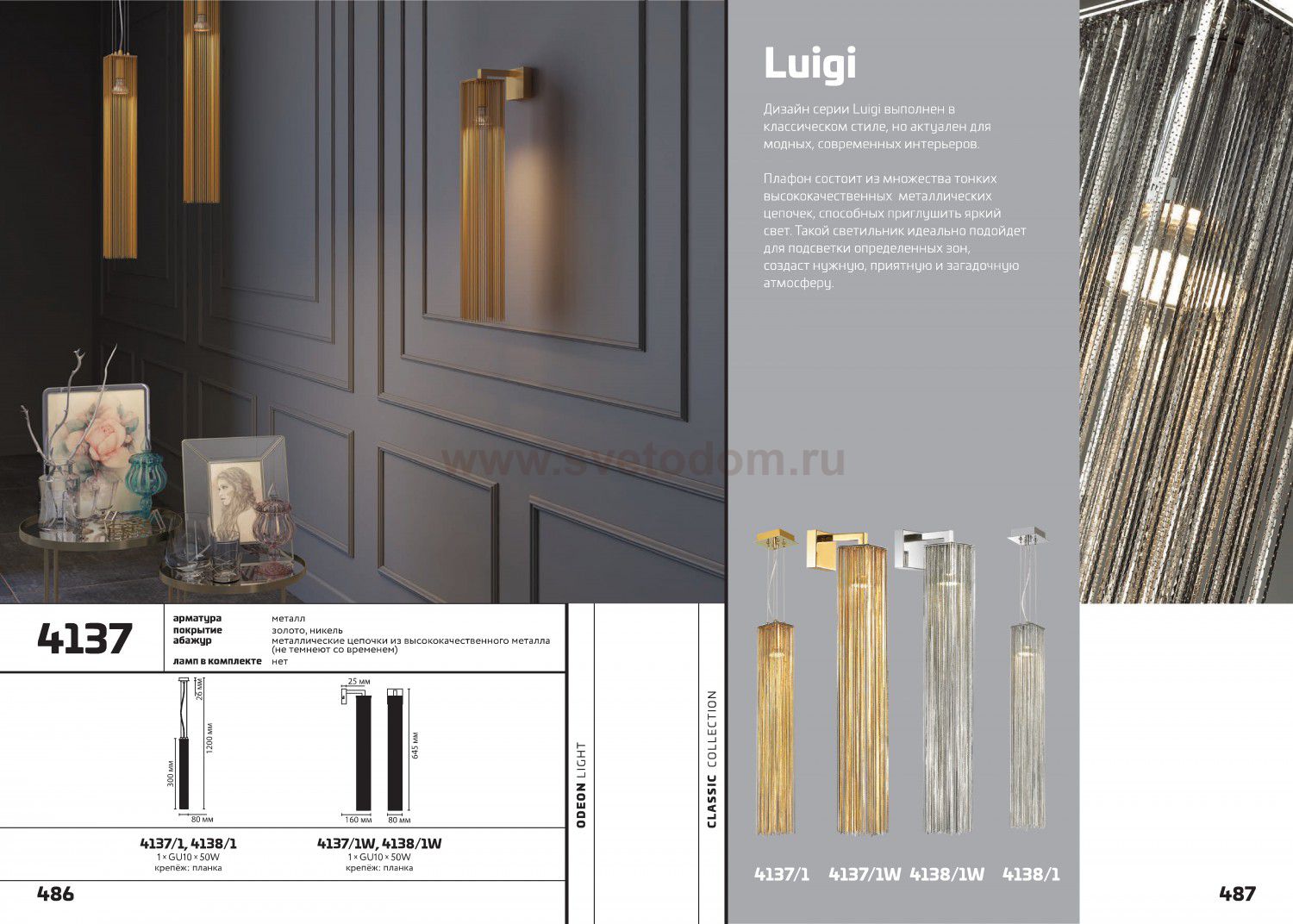 4138/1W CLASSIC ODL19 451 хром Бра GU10 1*50W LUIGI Штрих-код