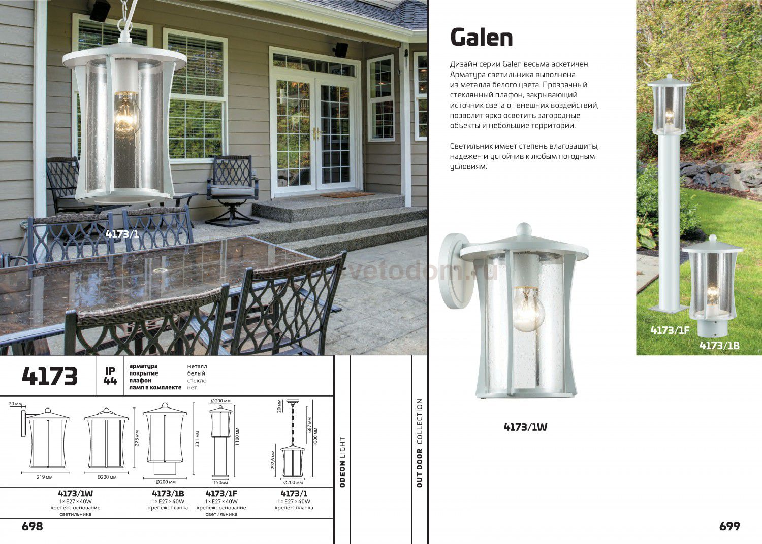 Дизайн линии Galen весьма аскетичен. Арматура светильника выполнена из металла и имеет натуральный темно - коричневый цвет, идеально сочетающийся с цветом земли и дерева. Прозрачный стеклянный плафон, закрывающий источник света от внешних воздействий, позволит ярко осветить загородные объекты и небольшие территории. Светильник имеет степень влагозащиты, надежен и устойчив к любым погодным условиям