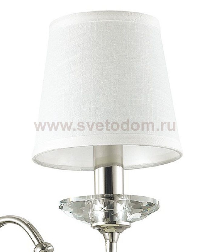 Благородный сдержанный дизайн линии Ester лишен вычурного декора и украшен лишь прозрачными хрустальными элементами. Арматура светильника из металла, рожки дополнены белыми текстильными абажурами. Блестящее хромированное основание и хрусталь красиво отражают свет и дают завораживающие блики. Светильник будет превосходно смотреться в классическом или неоклассическом интерьере