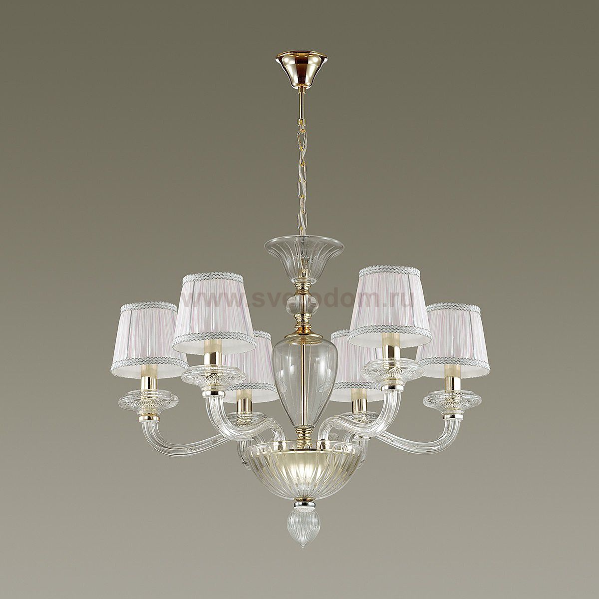 Арматура, декор: металл, стекло, хрусталь; абажур: ткань Материал плафона