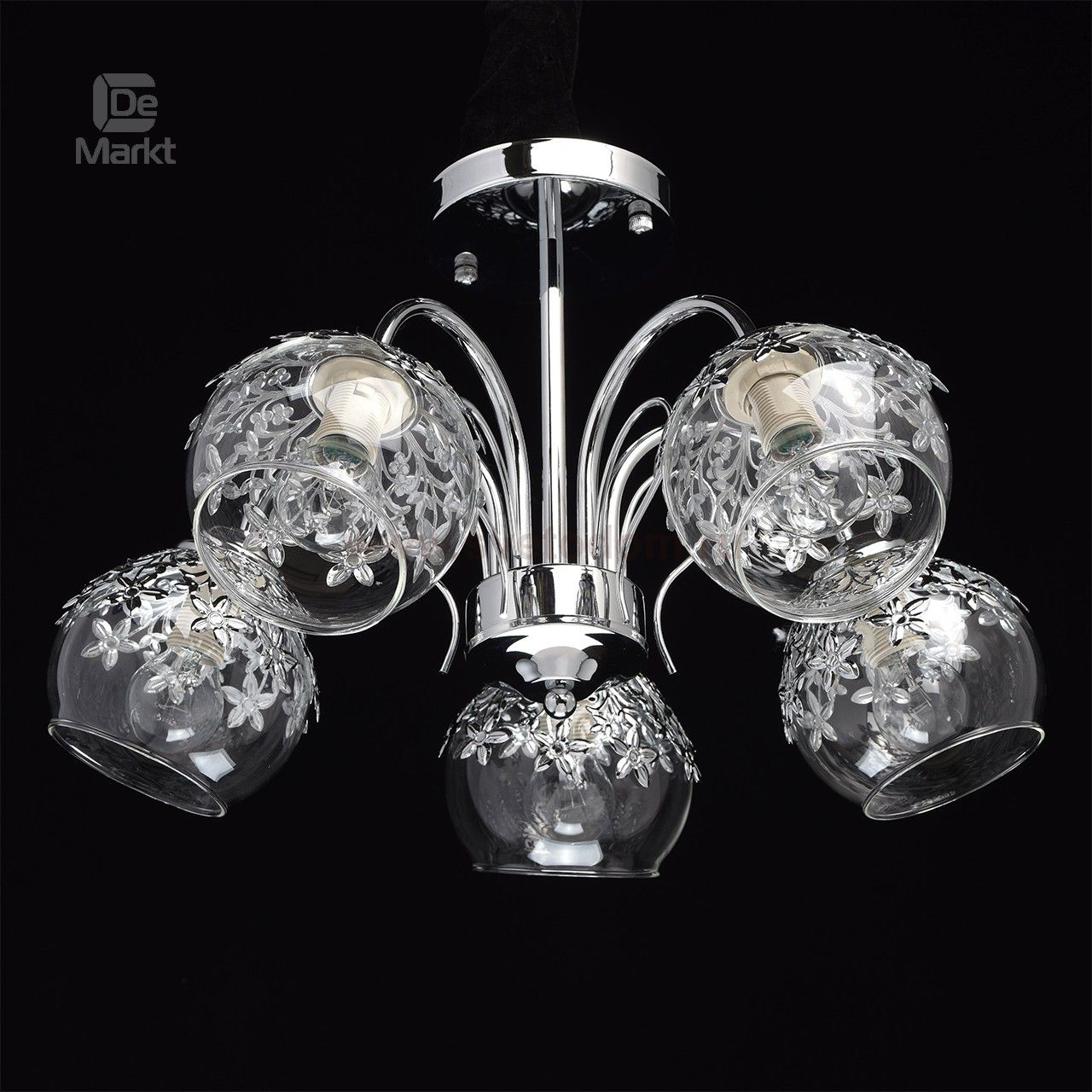 Современный элегантный дизайн позволяет люстре вписаться в большинство интерьеров.Прозрачные обращенные вниз плафоны создают яркое приятное освещениеМеталлический растительный орнамент на плафонах придает люстре оригинальность.Люстра выполнена в 3-х цветах , что позволяет ей встроиться в интерьеры, выполненые в разных цветовых решениях.Демократичная цена Комментарий
