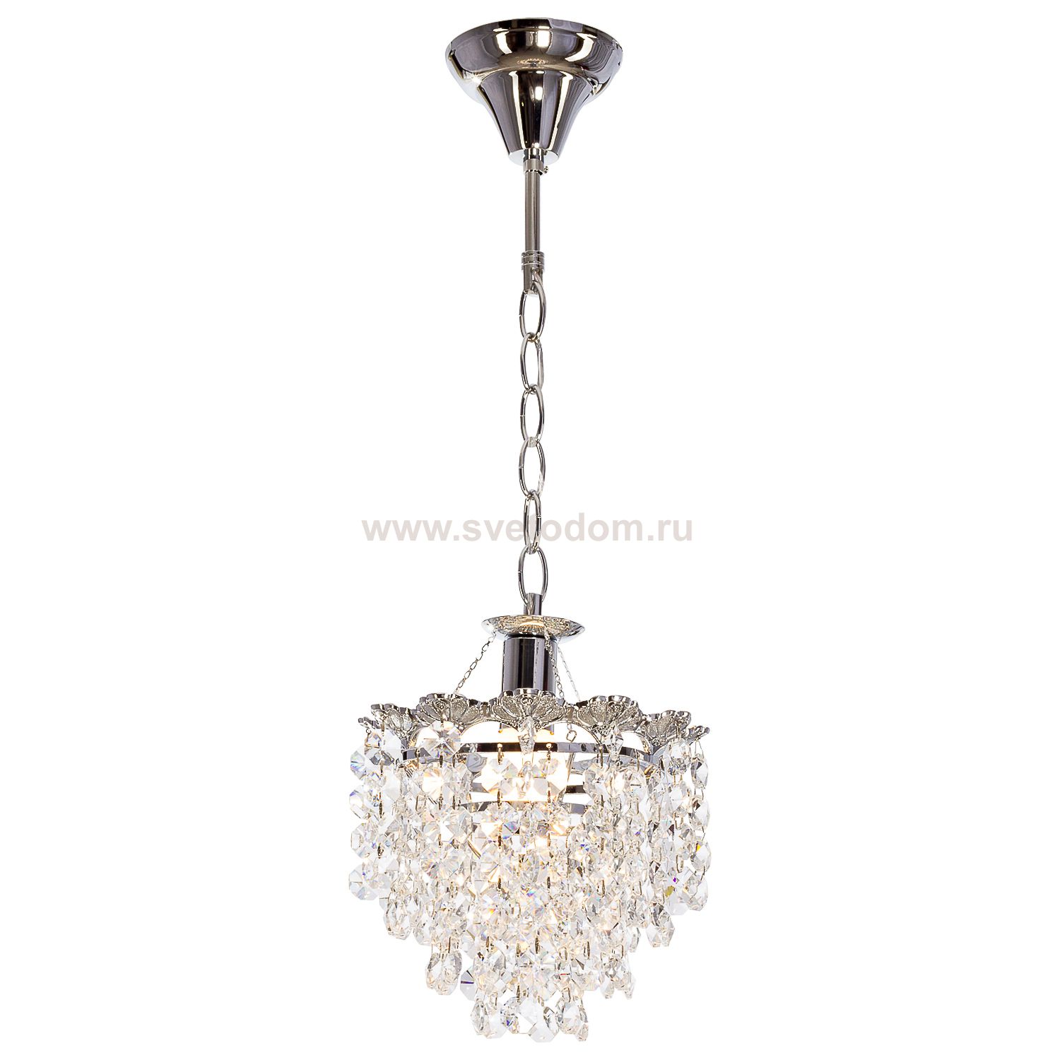 Люстра с хрусталем 2825/1CR+WT от бренда ЭкономСвет. Каркас выполнен из материала металл, цвет хром. Цоколь E27 рассчитан на лампы максимальной мощности до 60 Вт, а максимальная площадь освещения составит до 2 м?.