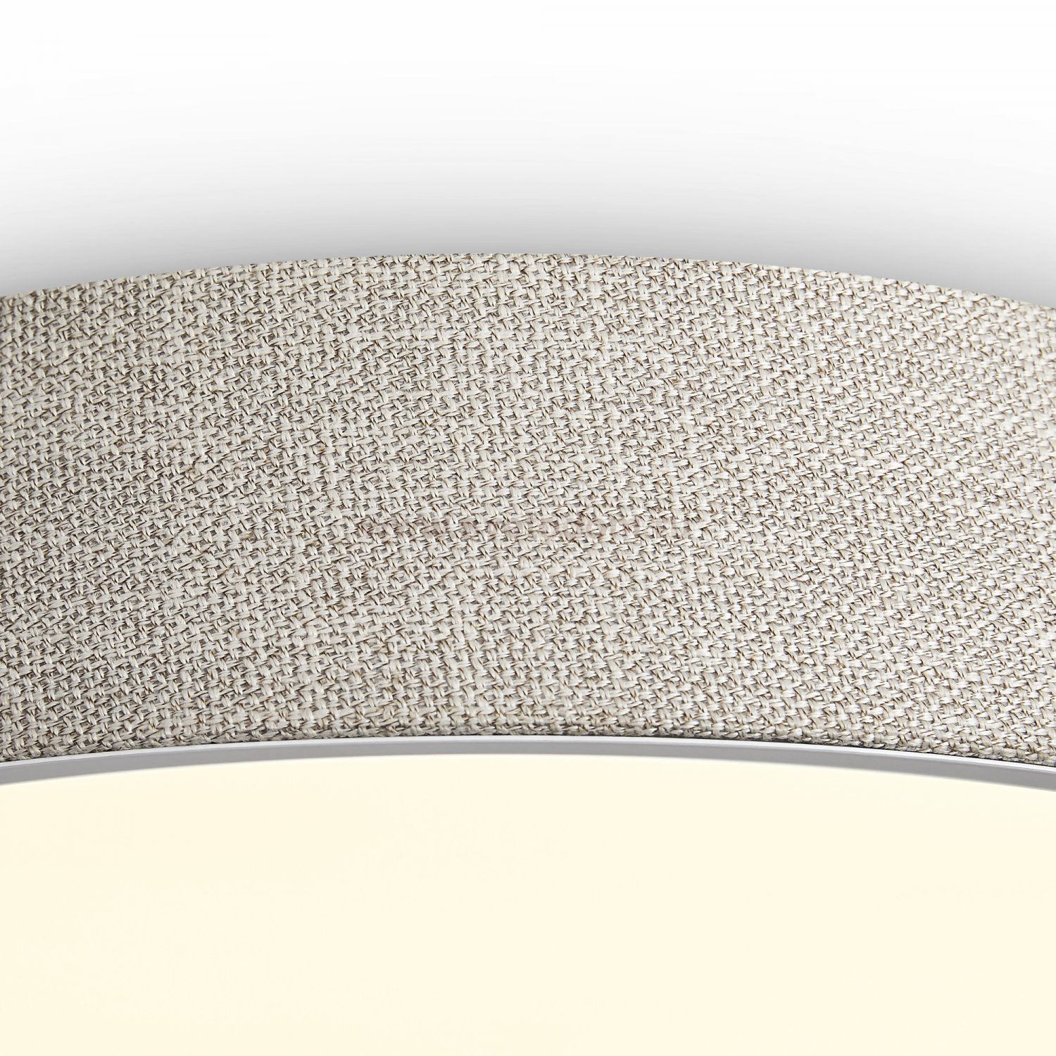 Материал арматуры — металл белого цвета. Абажур выполнен из льна в бежевом или сером цвете ткани. Светильники представлены в подвесном и потолочном исполнении и оснащены LED-источниками света с регулируемой цветовой температурой от 2700К до 4000К прямо на драйвере. Особенность серии в том , что окантовка абажура меняется с бежевого на серый и наоборот благодаря магнитным креплениям, которые входят в комплект. Также доступна версия с цоколем E14. Элегантный дизайн коллекции гармонично дополнит как классические, так и современные интерьеры.