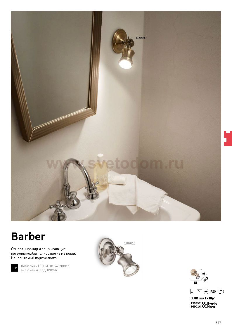 Светильник бра от известной итальянской фабрики Ideal lux из каталога Classico в стиле Кантри под артикулом BARBER AP1 BRUNITO (159997) серии BARBER имеет ряд отличительных характеристик: Основа, шарнир и покрывающие патроны колбы полностью из металла. Наклоняемый корпус света.