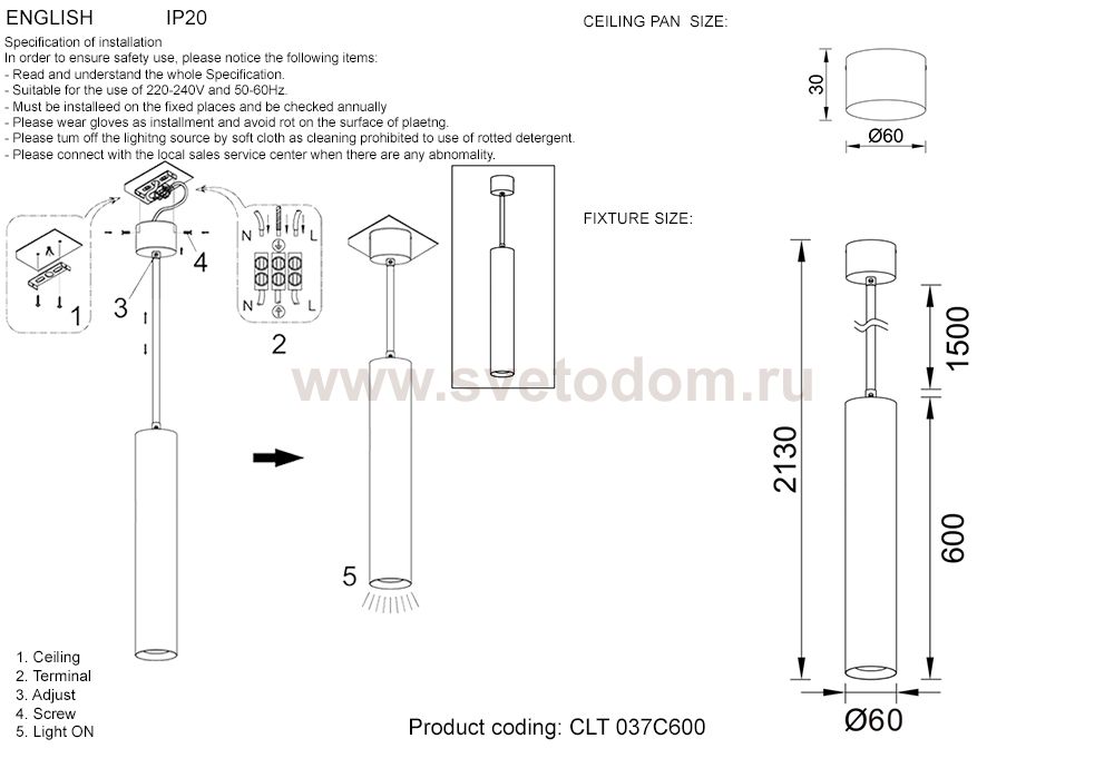 Характеризует подвесную систему светильника. Данную длину возможно изменять: дополнять или сокращать в пределах указанных данных.