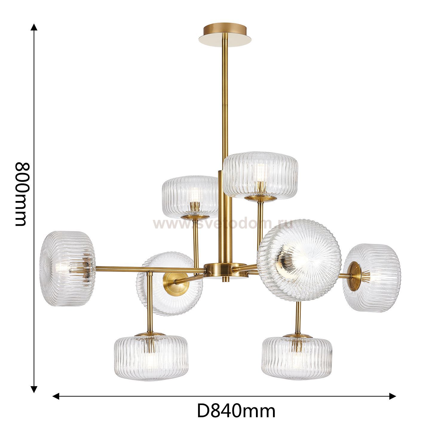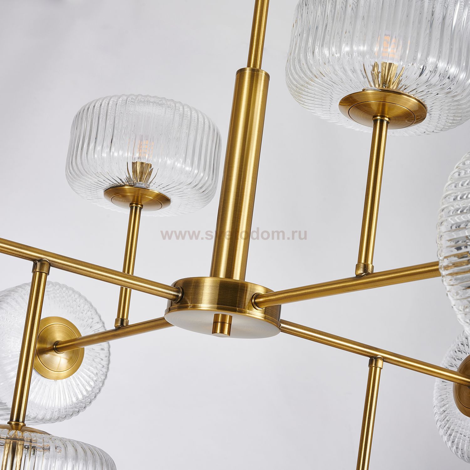 каркас цвета латуни, плафоны из выдувного рельефного прозрачного стекла, лампу G9 можно менять Серия