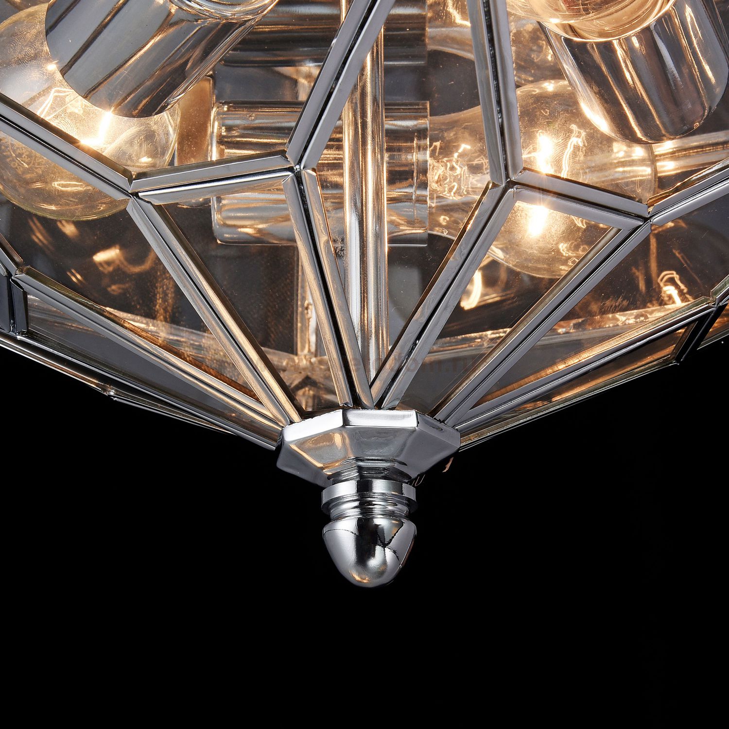 Металлическая арматура в двух оттенках: хром и бронза. Плафон – прозрачное выдувное стекло с металлическим каркасом.