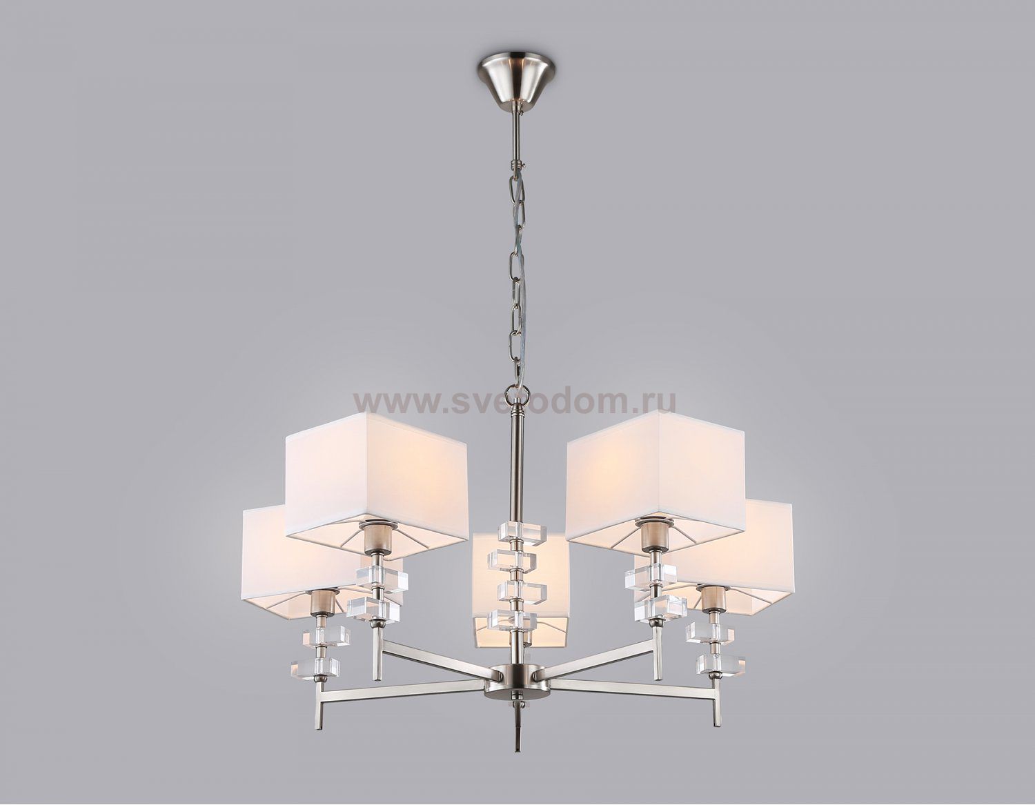 Подвесная люстра с абажурами из коллекции HIGH LIGHT. Модель LH71321 представлена в классическом стиле. Люстра выполнена из тканевых плафонов белого цвета и декорирована акриловыми элементами, каркас изготовлен из металла цвета никель. Для данной модели подойдут лампы с цоколем Е14. Люстра будет прекрасным дополнением в любом помещении.