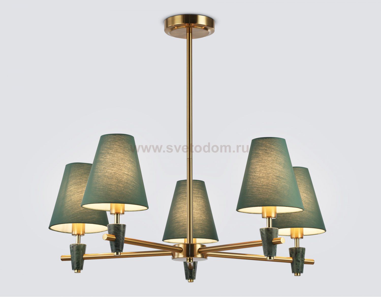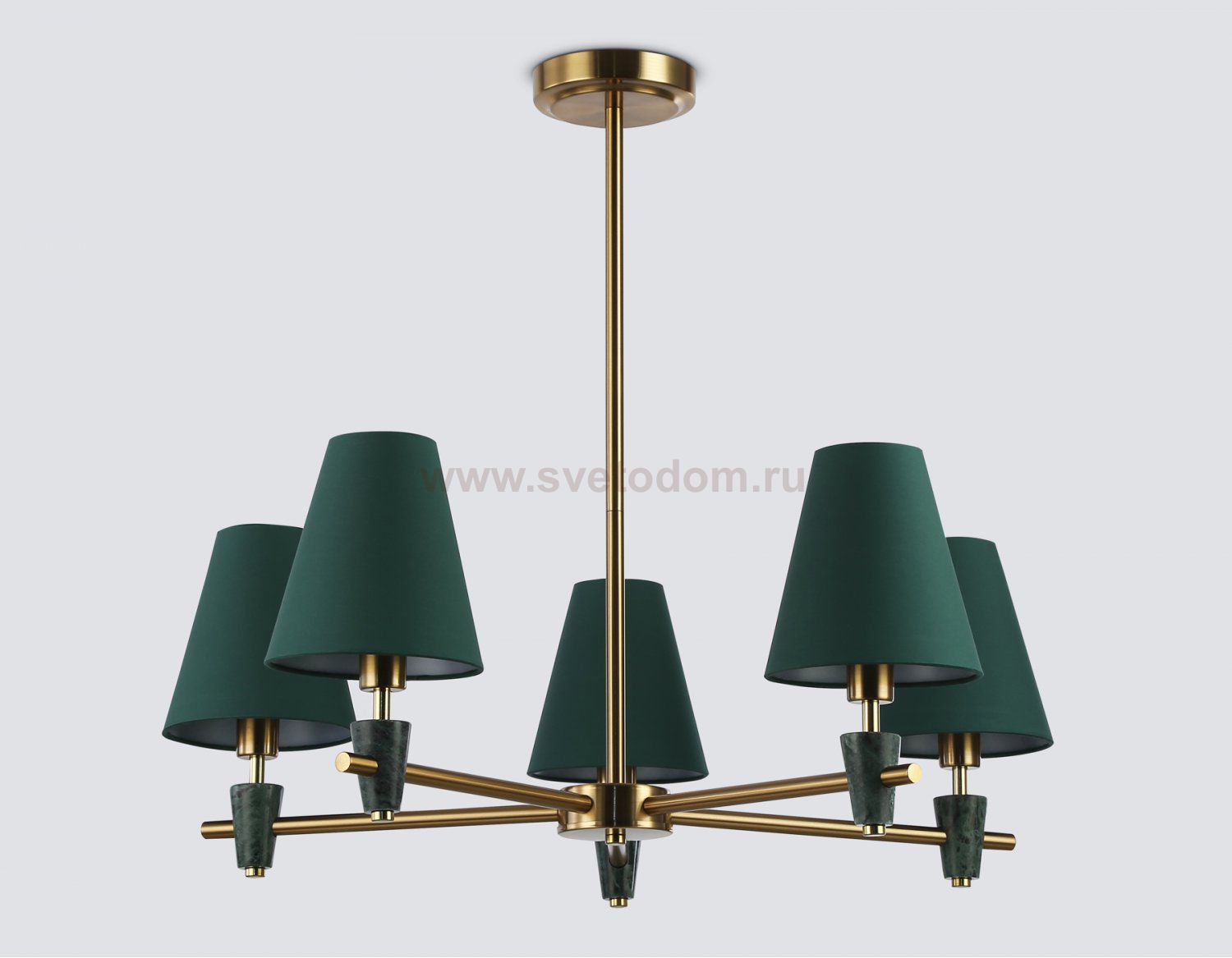 Люстра на штанге с абажурами и мрамором из коллекции HIGH LIGHT. Модель LH75051 представлена в стиле неоклассика. Люстра выполнена из металлического каркаса цвета латунь, тканевых плафонов зеленого цвета, и декорирована элементами из мрамора. Для данной модели подойдут лампы с цоколем Е14. Люстра будет прекрасным дополнением в любом помещении.