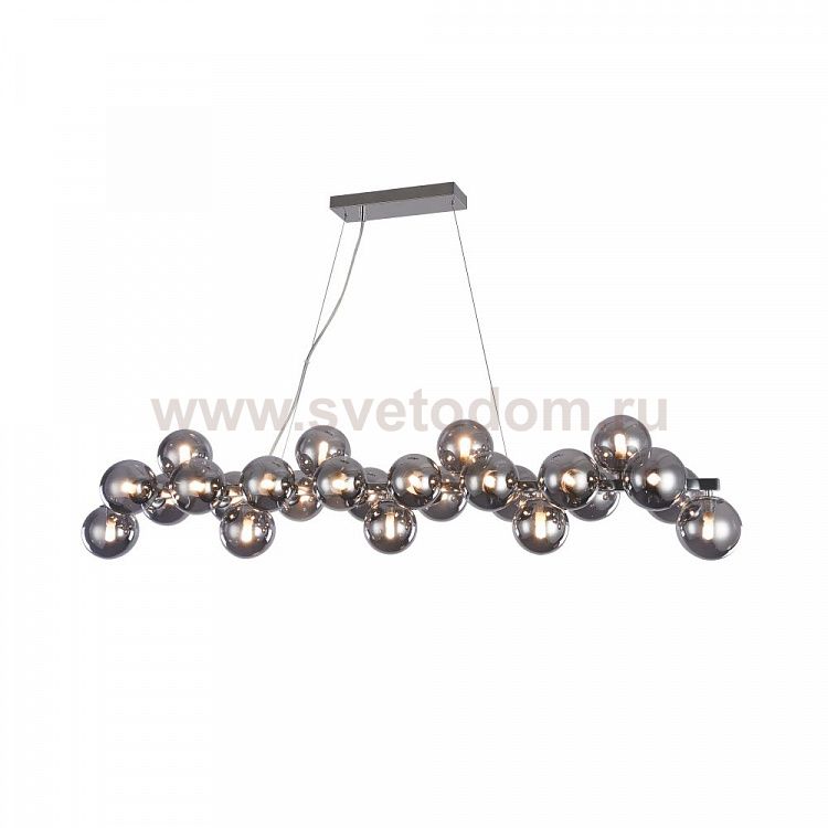 Особенности модели MOD547PL-25CH: Масштабные скульптурные композиции, образованные многочисленными шарами из выдувного стекла, формируют неповторимый облик светильников серии. На полированных металлических ветвях установлены тонированные плафоны, которые мягко рассеивают и приглушают свет ламп. Модели серии представлены в трех цветах: золото, хром и латунь. Высота подвесных светильников регулируется длиной троса. Серия представлена потолочными, подвесными светильниками, и бра.
