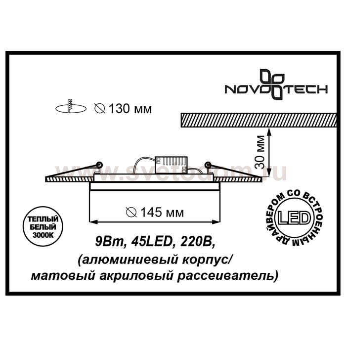 Встраиваемый светодиодный светильник со встроенным драйвером модели Novotech 357288 из серии LANTE отличается следующим качеством: Корпус светильника произведен из алюминия. Это металл, основными достоинствами которого являются — устойчивость к практически всем видам негативного воздействия окружающей среды, коррозии. Небольшой вес, по сравнению с другими видами металла и экологическая безопасность материала. Рассеиватель сделан из акрила. Основными свойствами которого являются: высокая светопропускаемость — 92 %, которая не изменяется с течением времени, сохраняя свой оригинальный цвет, сопротивляемость удару в 5 раз больше, чем у стекла, устойчивость к воздействию влаги, бактерий и микроорганизмов, морозостойкость и экологичность. Срок службы светодиодов до 25000 часов.