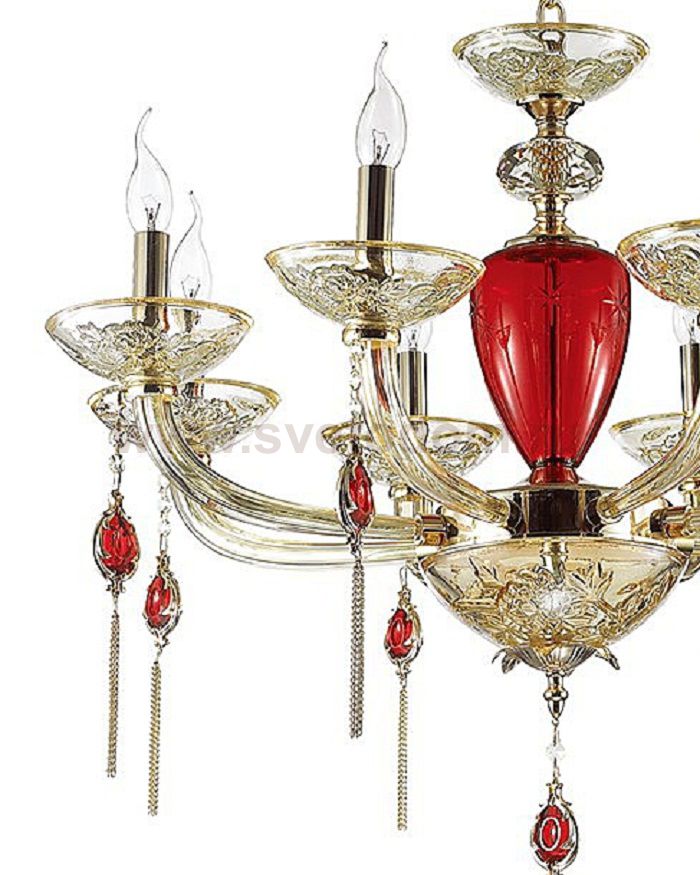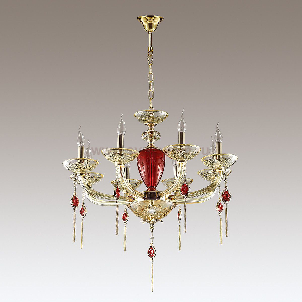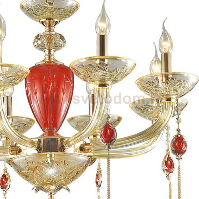 Яркая и праздничная люстра 3927/8 серии Donna выполнена в красивом сочетании золотого и красного цветов. Основные части светильника выполнены из стекла с золотистым оттенком, дополненное необычайно красивым ярко-красным стеклом на основании и изящными красными подвесками. Такое королевское сочетание выглядит поистине впечатляюще. Золотой цвет будет гармонично сочетаться как в светлых, так и в темных интерьерах и символизировать радость, счастье и успех. Цоколь E14. Мощность 8*40W. Нет ламп в комплекте.