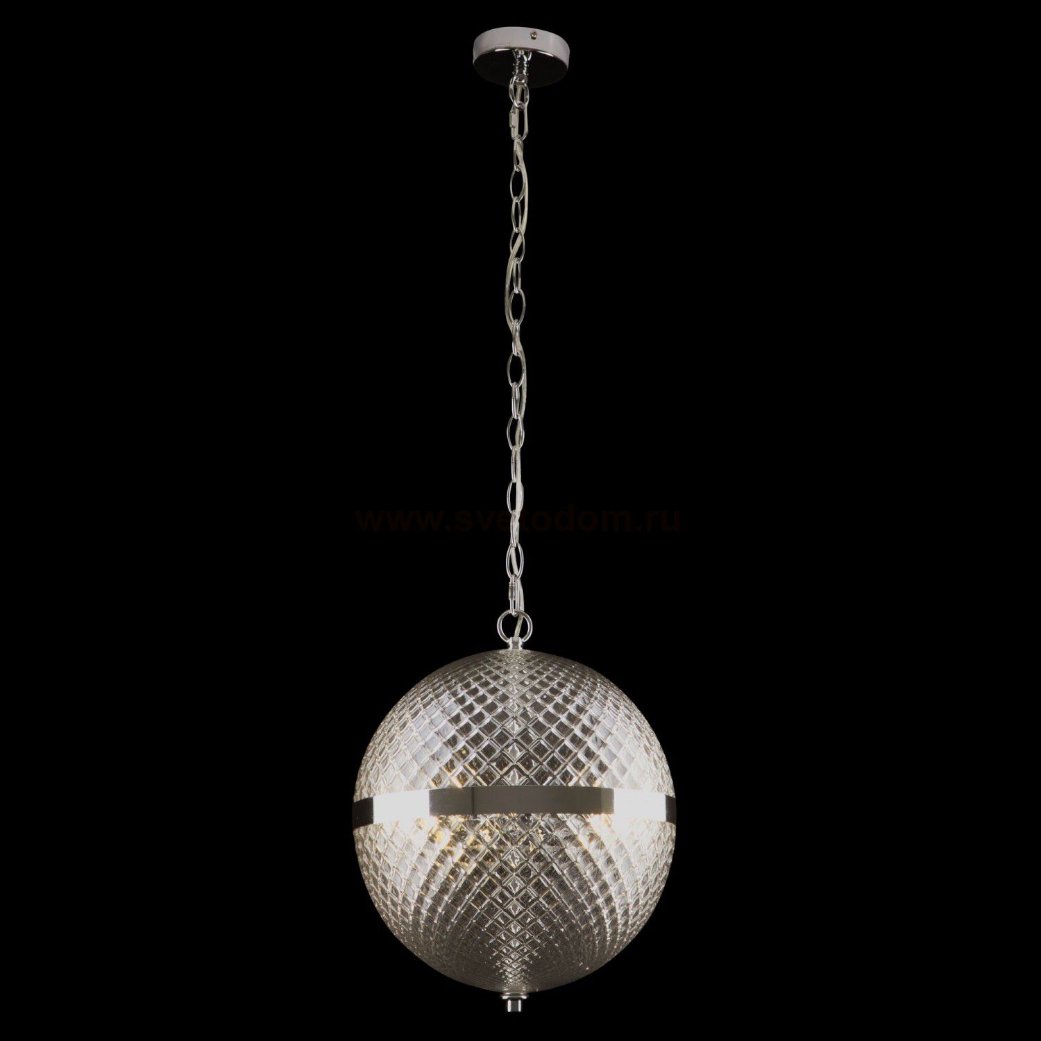 Арматура – металл, цвет – хром. Плафон – прозрачное выдувное стекло. Сферическая форма с фактурным рисунком. Регулируемая высота.