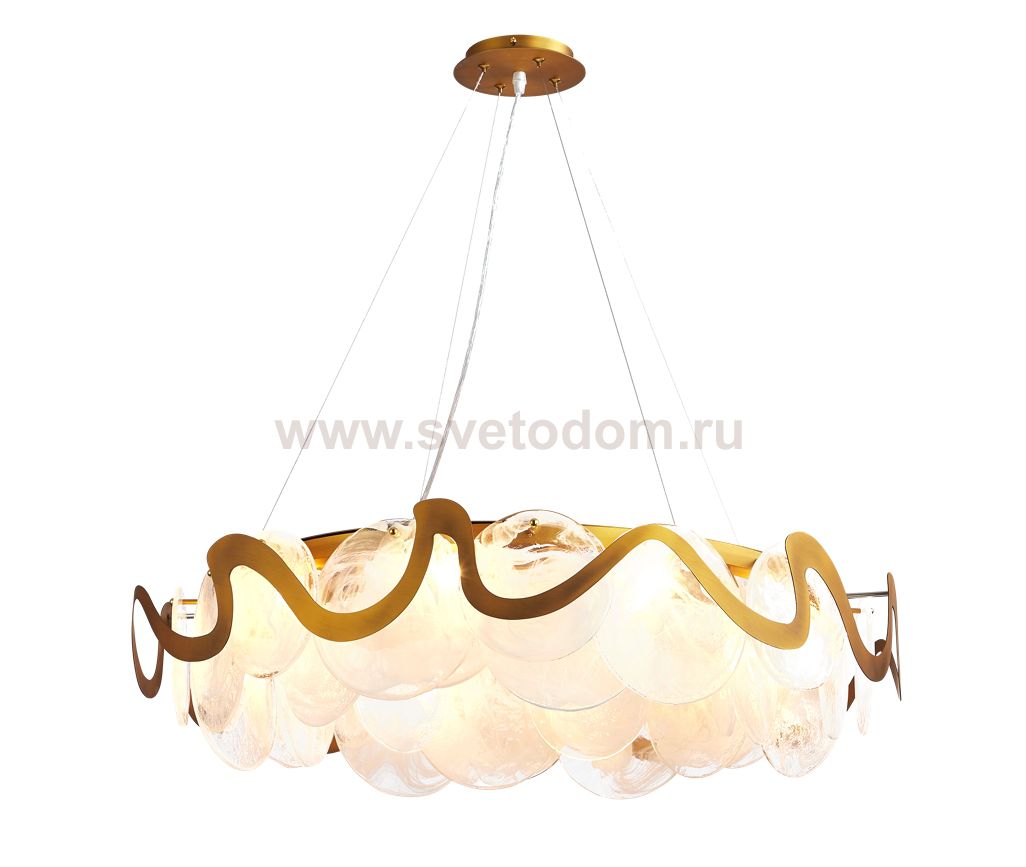 Люстра подвесная 2130/03/10P Stilfort серии Sweet - воплощение стиля модерн. Арматура люстры, изготовленная из металла в цвете "золото", украшена стеклянными дисками.